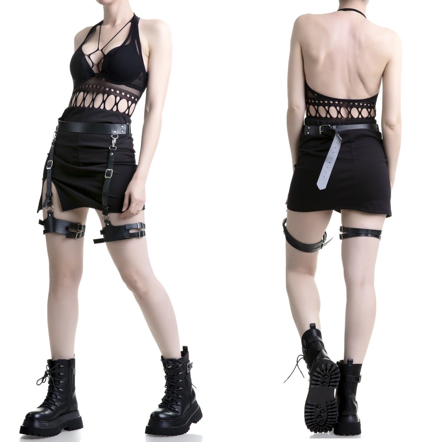 Body negro y elástico de rejilla con agujeros. Espalda abierta.