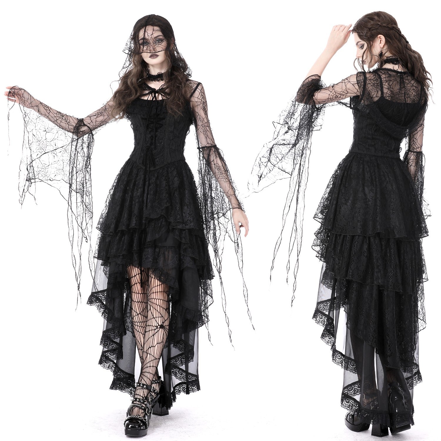 Bolero negro y transparente con capucha y un diseño de telas de araña.