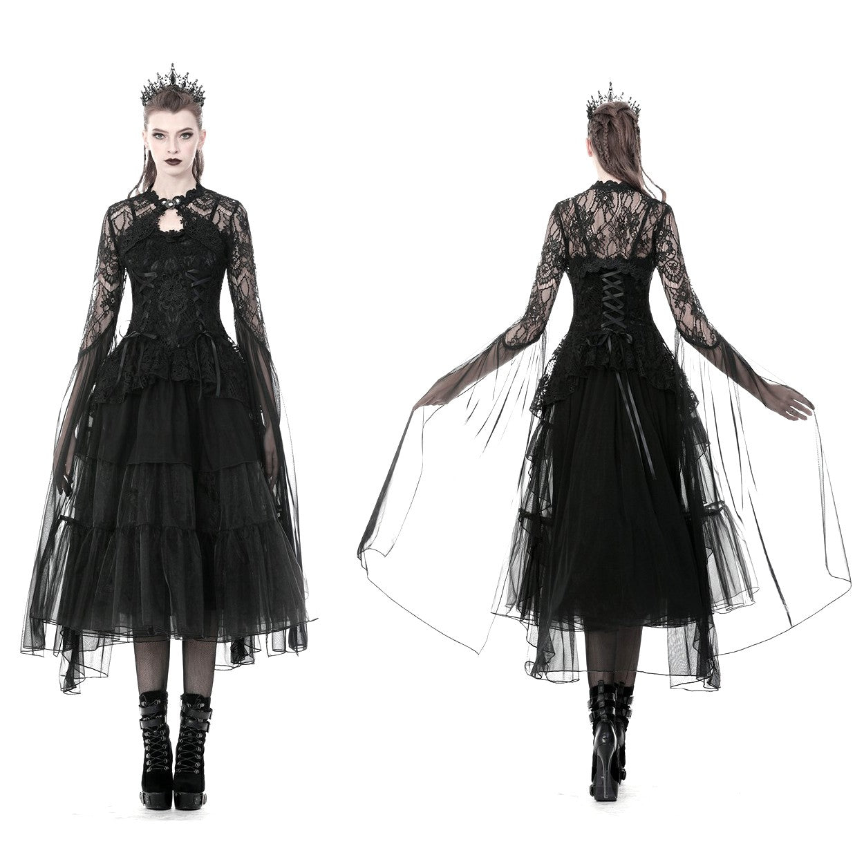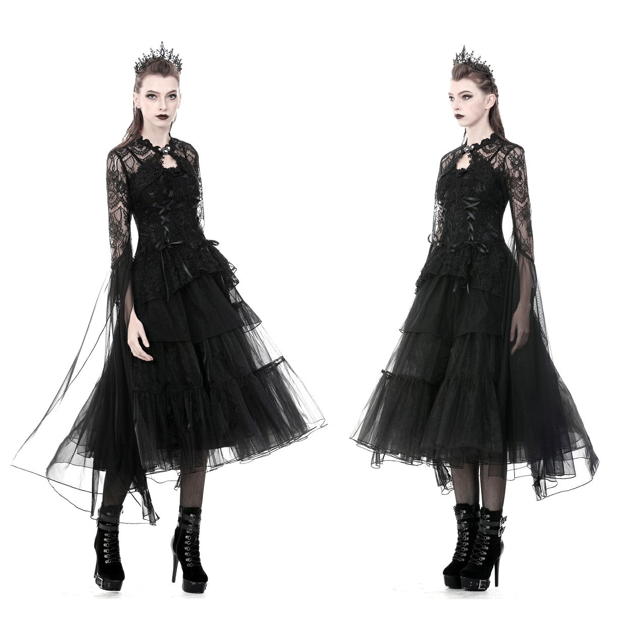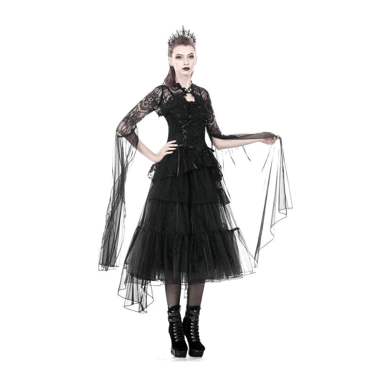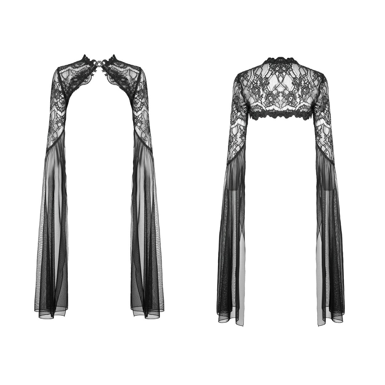 Bolero negro y semitransparente de encaje. Mangas muy largas.