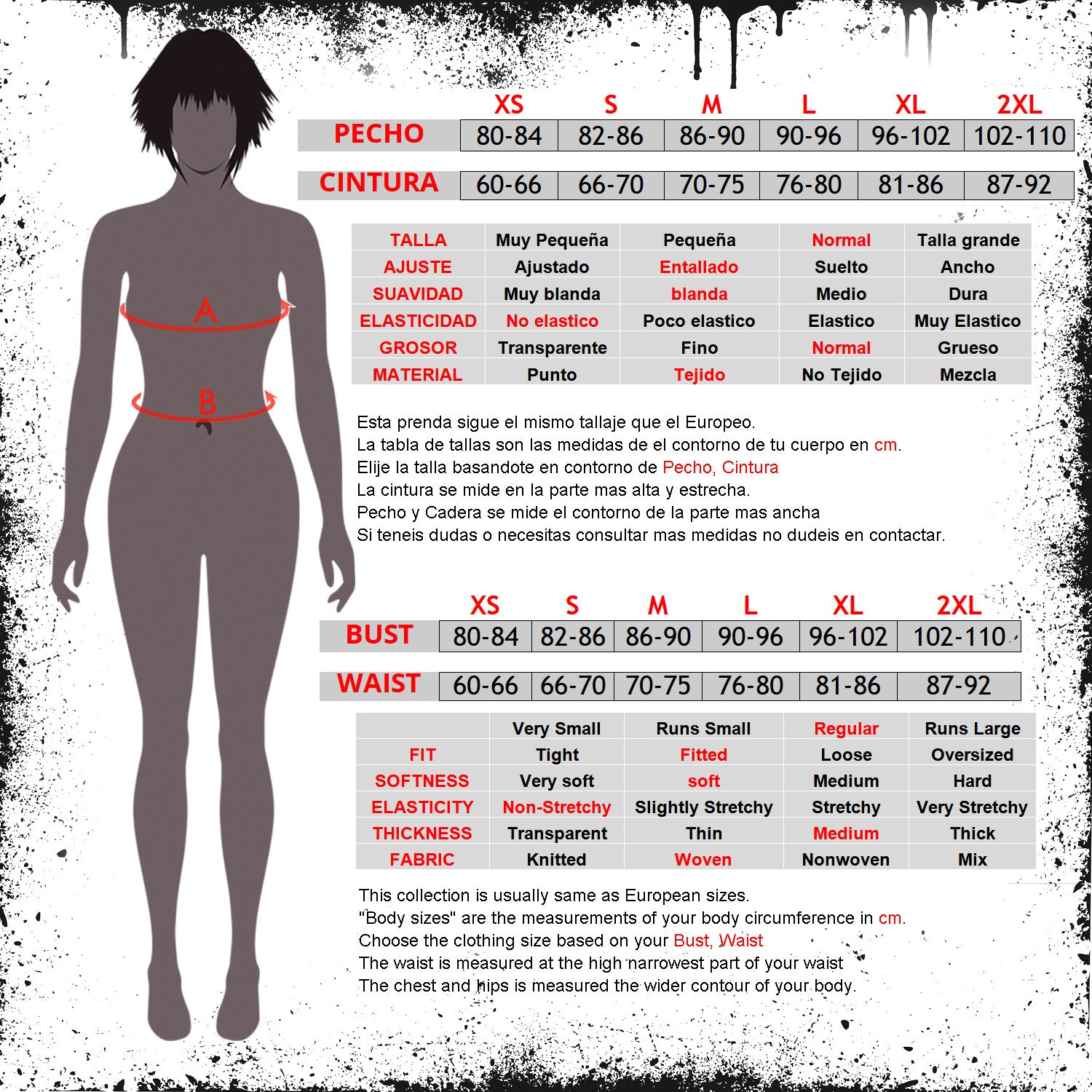 Medidas de la modelo: 80 cm de pecho, 60 cm de cintura, 90 cm de cadera y 172 cm de altura. La modelo lleva la talla XS.