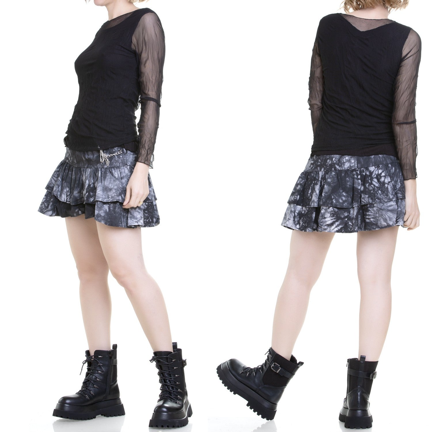 Inspírate en el estilo alternativo con nuestra camiseta de tul transparente con un efecto arrugado, con un forro negro debajo para un toque de misterio. Hecha de 95% poliéster y 5% elastán, esta pieza esencial combina la delicadeza del tul con un toque rebelde. Eleva tu estilo con esta camiseta de tul única y versátil
