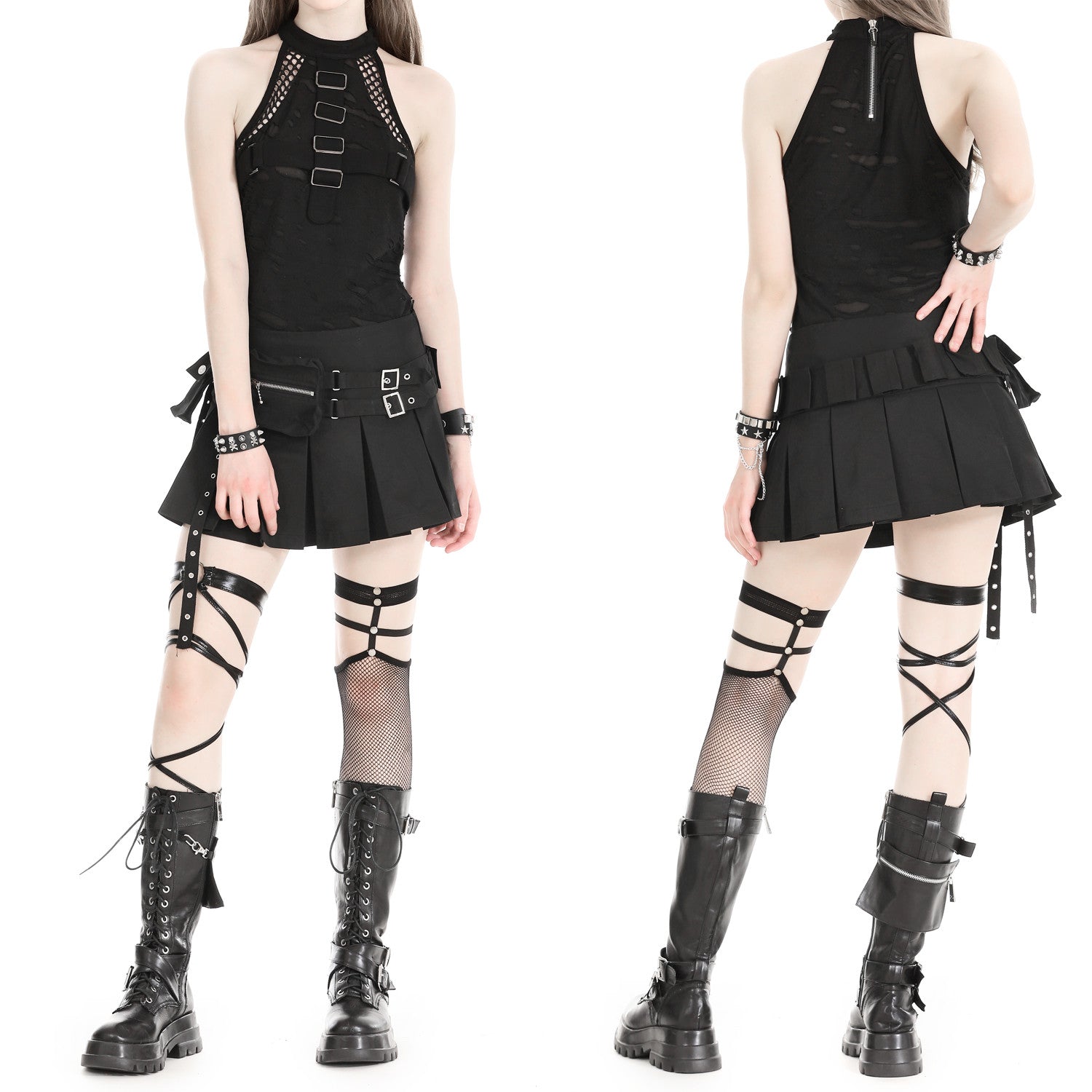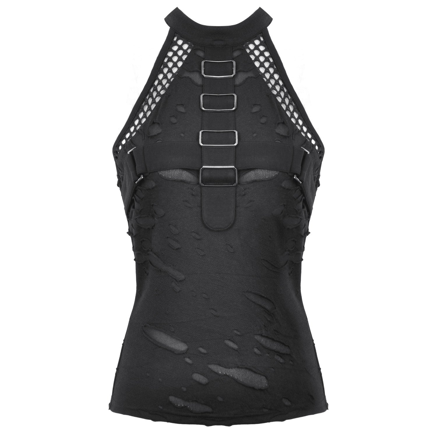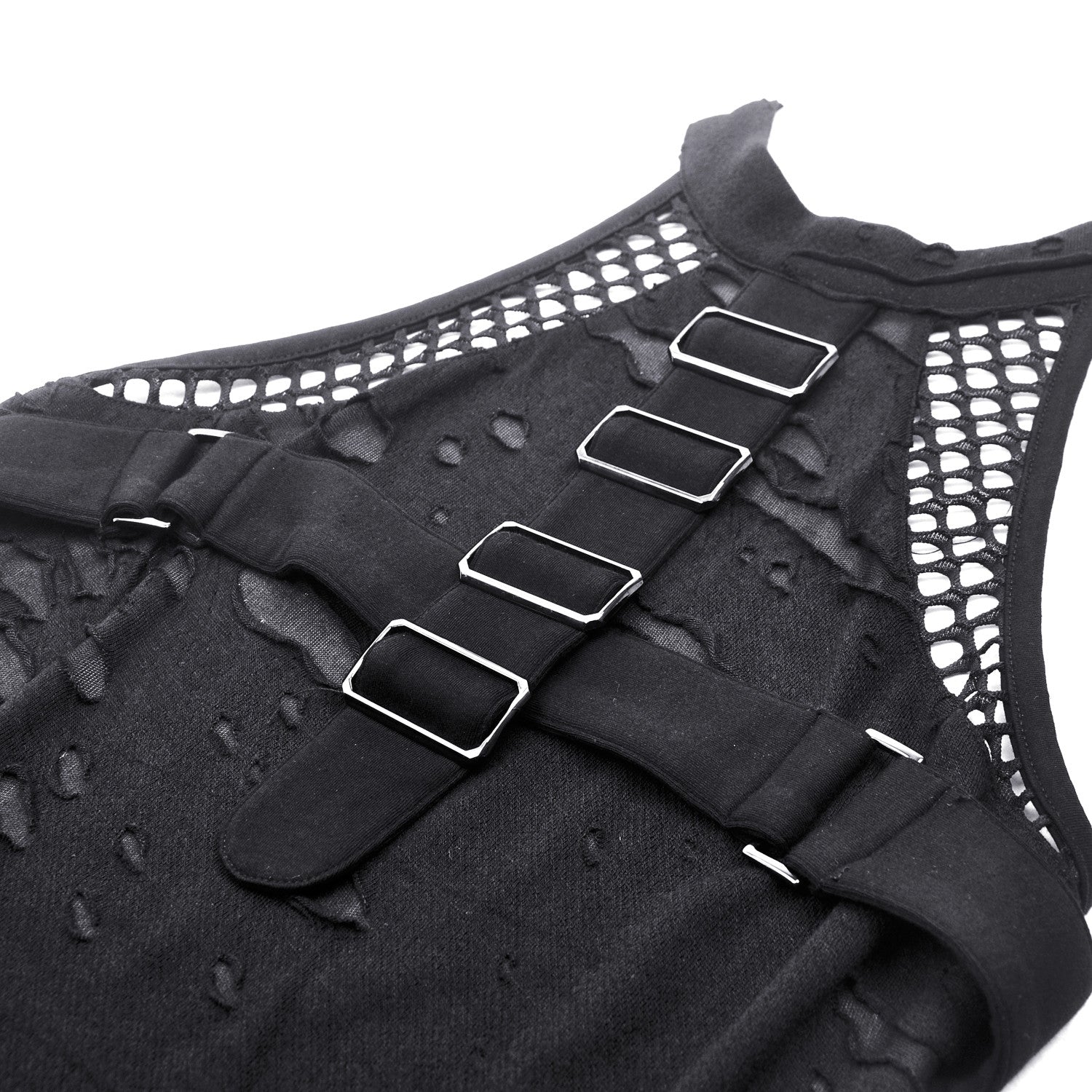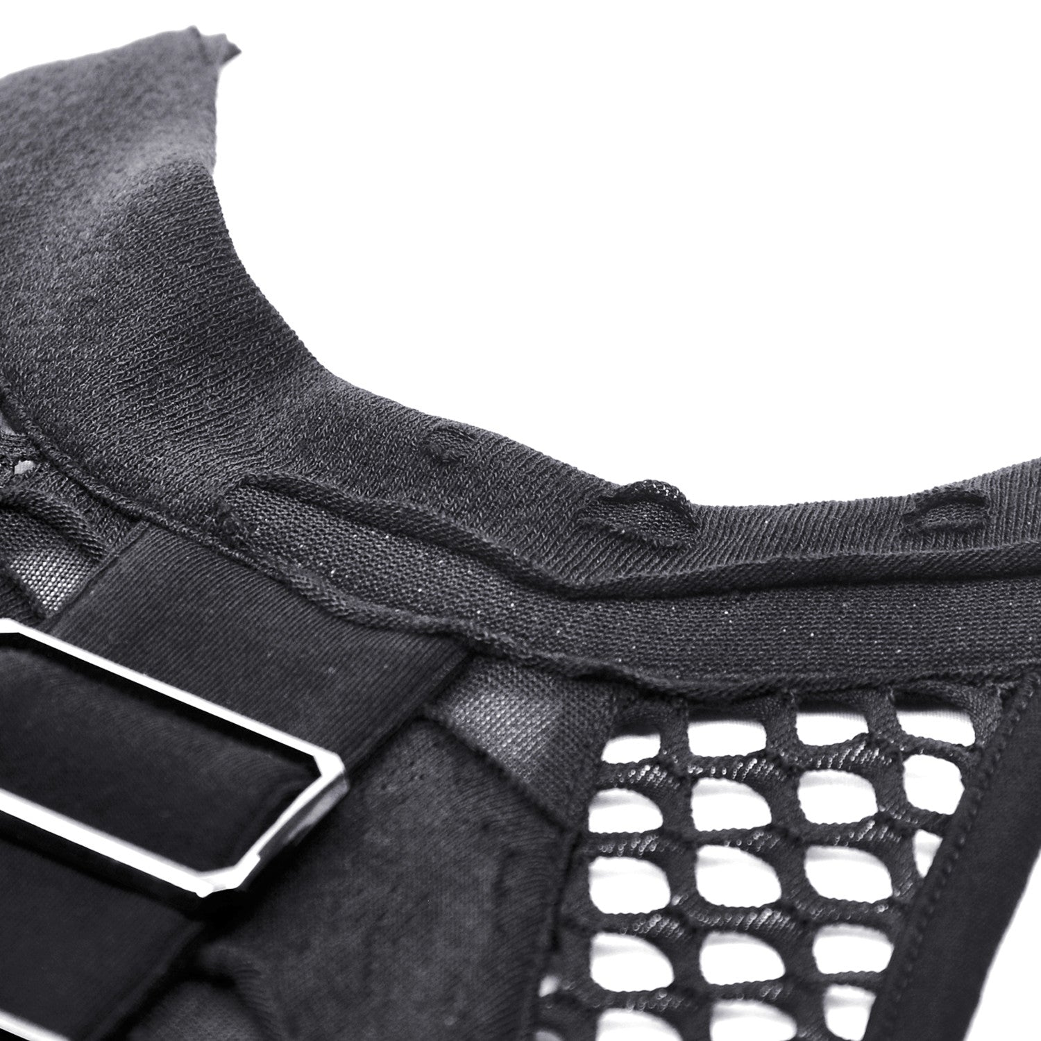 ¡Esta camiseta de Dark in love es perfecta! Está fabricada con tela efecto desgarrada, combina tela de rejilla y hebillas en la parte delantera, cierre de cremallera detrás para mayor comodidad al ponérsela y mejor ajuste.