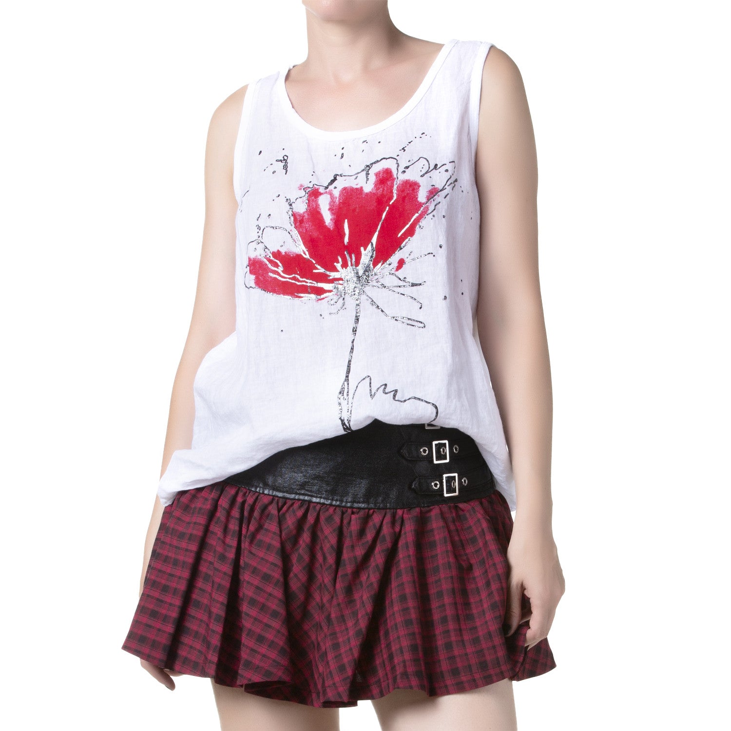 Camiseta de tirantes estampada, parte de delante en lino y la de atrás en algodón, Súper cómoda y de tejido agradable! 🌟