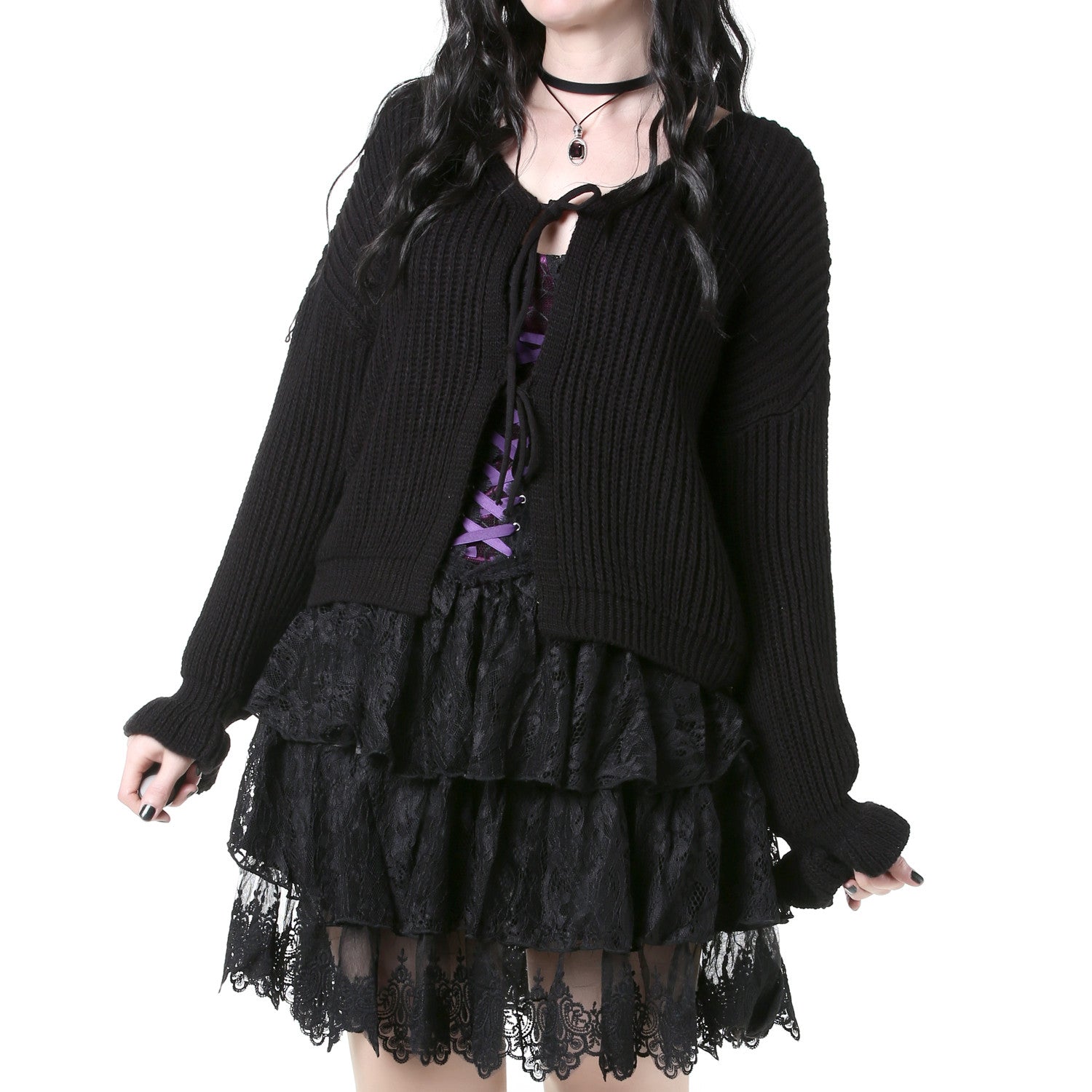 Chaqueta Gersey "Mara": Chaqueta de punto con mangas abullonadas y diseño ancho. Con dos tiras al frente para ajustarla, añade un toque diferente.