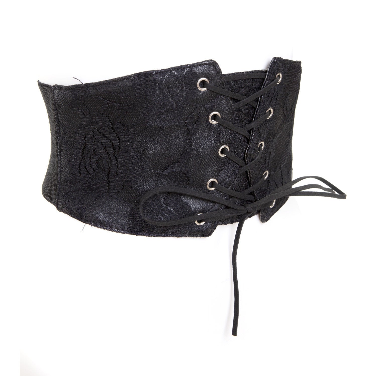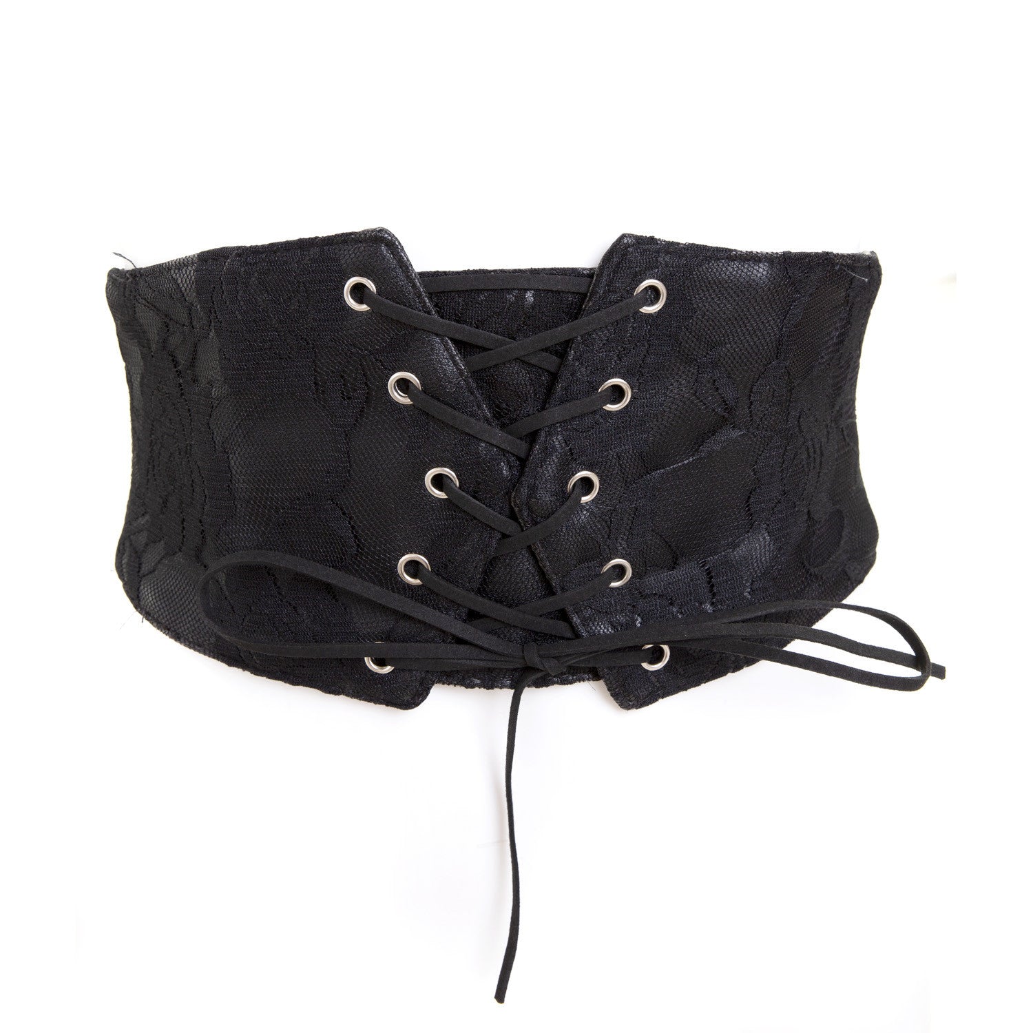 Descubre nuestro elegante cinturón negro, ancho y adornado con encaje. Presenta cordones cruzados en la parte delantera y botones en la parte posterior. Este accesorio es la elección perfecta para completar tu look gótico, alternativo o punk. Explora nuestra tienda en línea y añade este toque único a tu estilo.