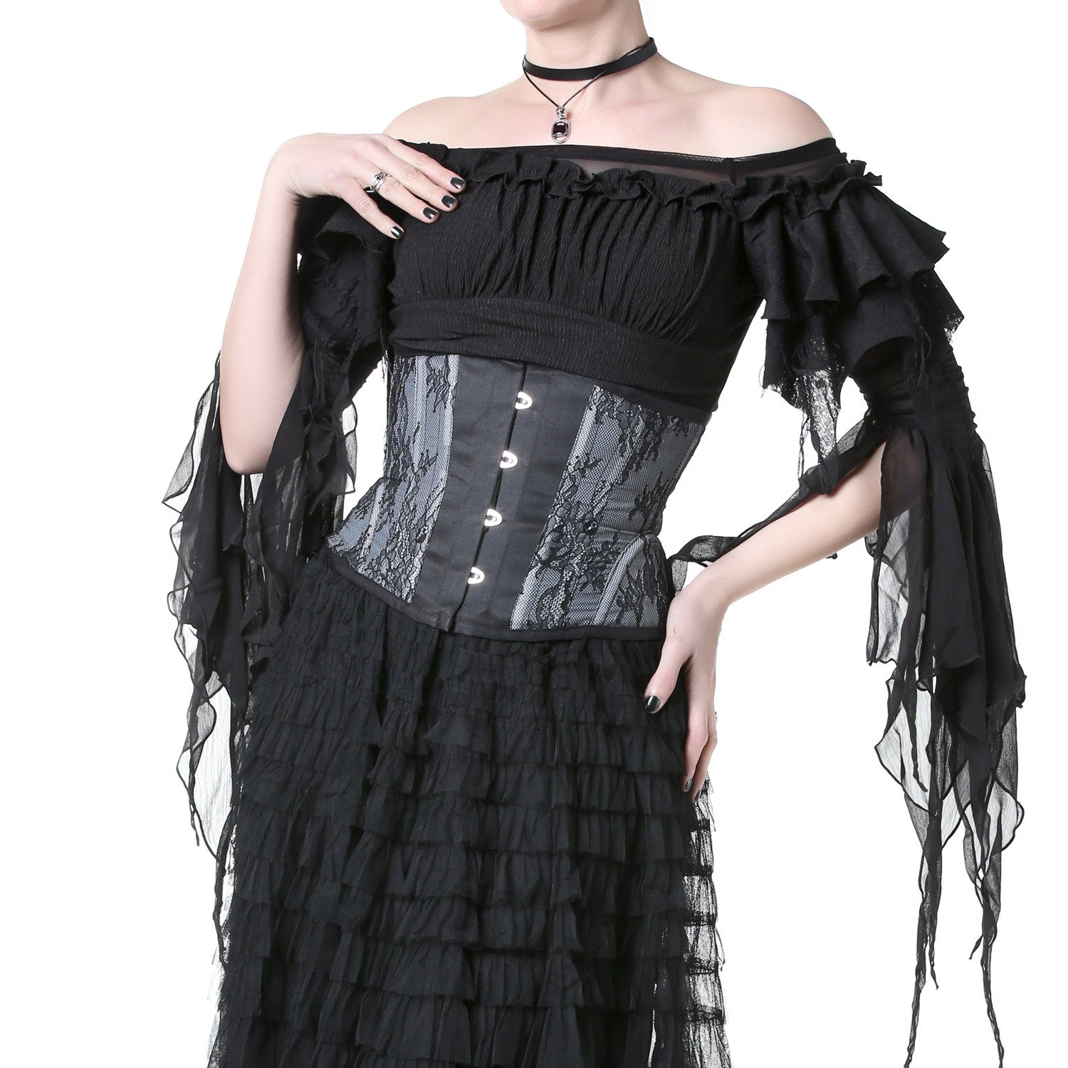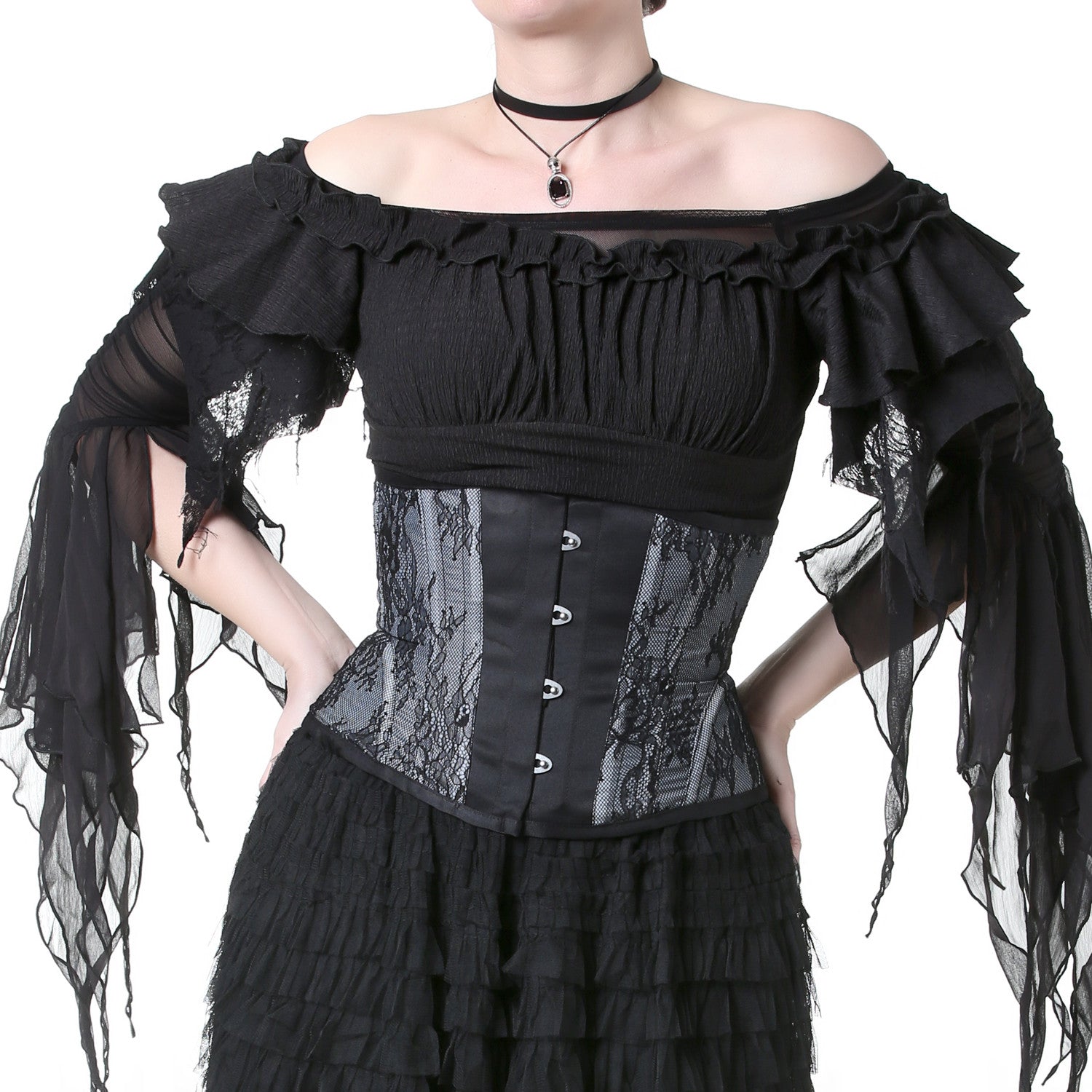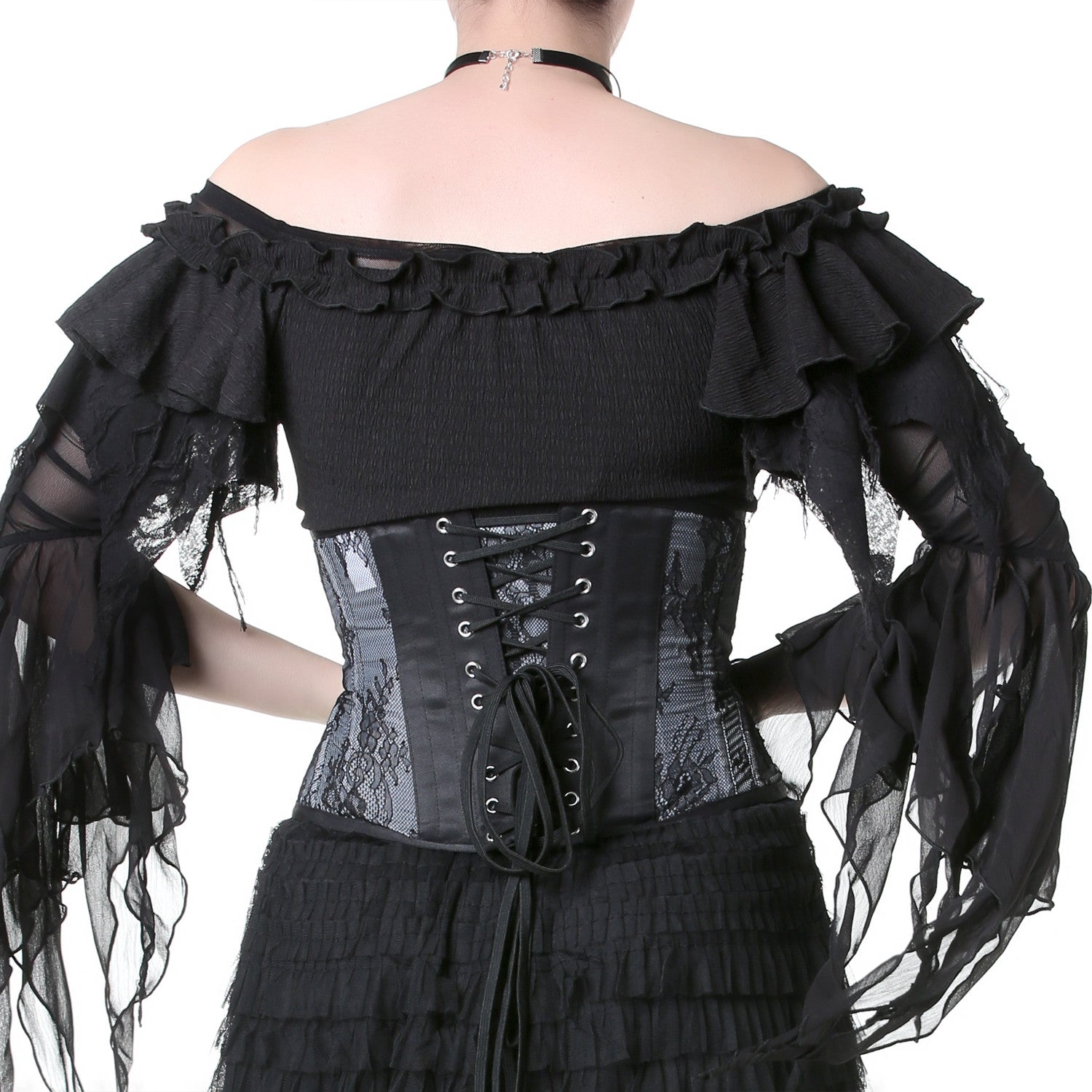 Este corsé underbust está confeccionado con encaje transparente y 16 varillas de acero que estilizan la figura. Diseñado para realzar la silueta, cuenta con un cierre frontal de 4 broches de acero duradero y un ajuste trasero con cordones para un ajuste perfecto.