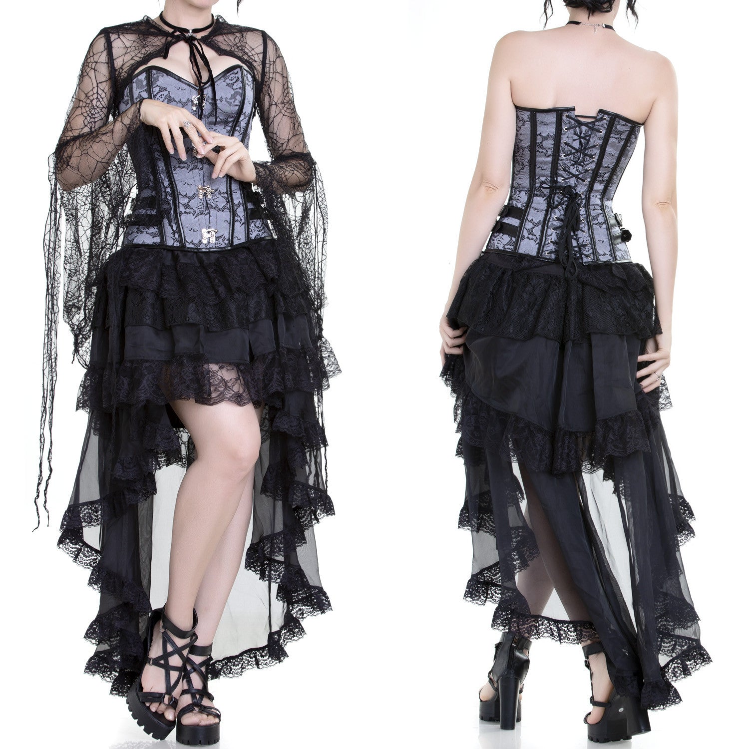 ¡Añade un toque de elegancia alternativa a tu estilo con nuestro corsé gris de diseño floral y polipiel negra! Este cautivador corsé cuenta con corchetes en la parte delantera y cordones cruzados en la espalda, realzando tu figura de manera única. Equipado con 12 varillas de metal, proporciona un soporte estructurado y un ajuste perfecto.