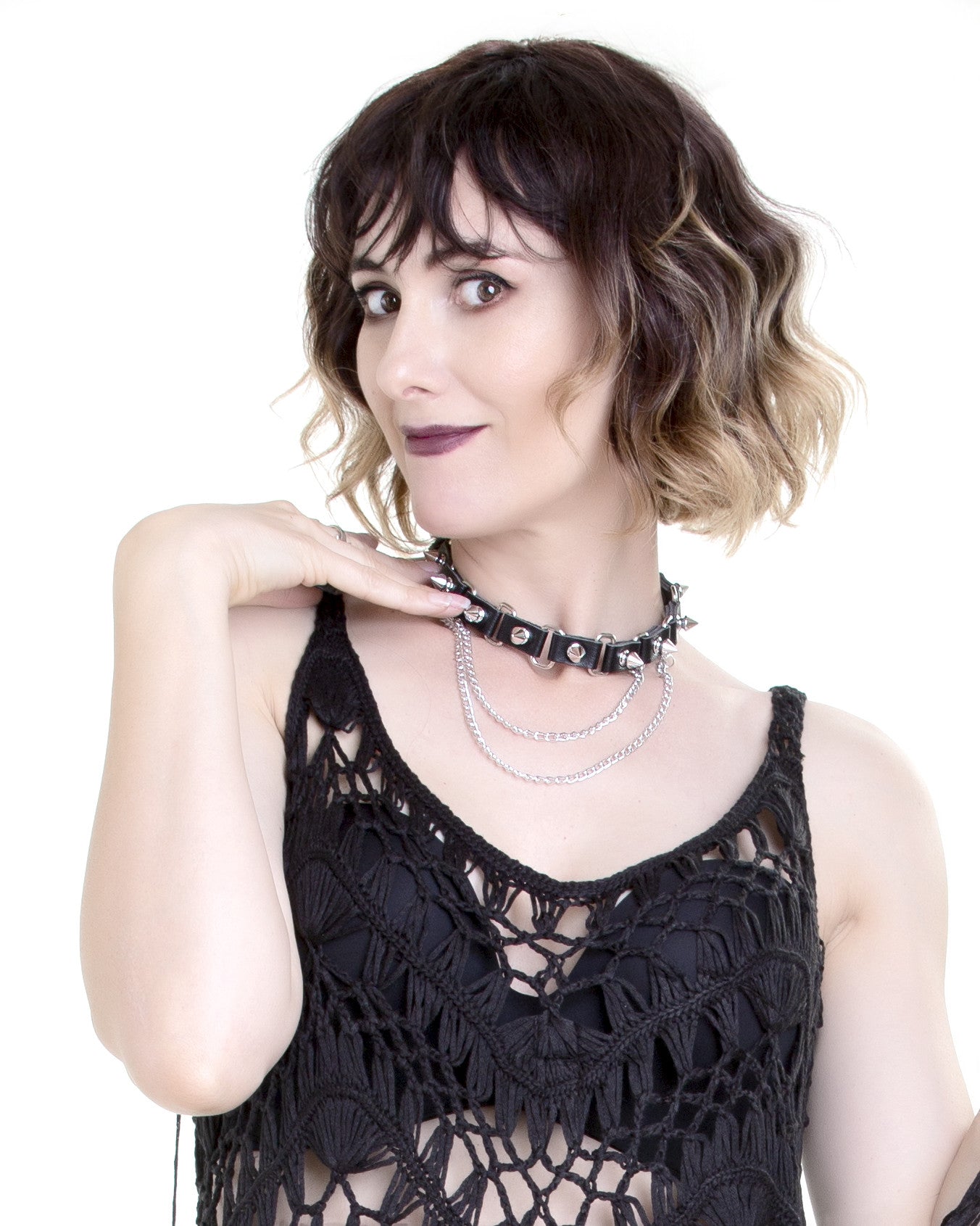 Completa tu estilo alternativo con nuestra impresionante gargantilla negra de polipiel, adornada con tachuelas, cadenas plateadas y una hebilla. Esta pieza única combina perfectamente la estética gótica, alternativa y punk para resaltar tu personalidad audaz. La combinación de polipiel, tachuelas y cadenas agrega un toque de rebeldía y originalidad a tu look. Con esta gargantilla, destacarás entre la multitud y expresarás tu estilo único. Encuentra esta exquisita pieza en nuestra tienda online de moda gótica, alternativa y punk, y lleva tu estilo al siguiente nivel.