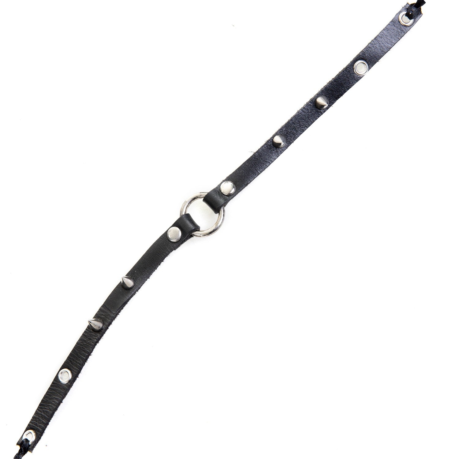 Gargantilla negra de Cuero vacuno con una anilla y pinchos.