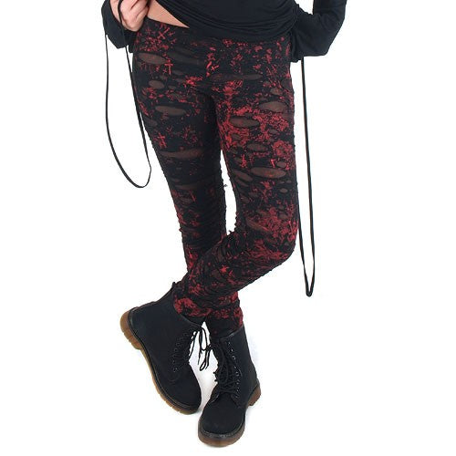 Legging negro agrietado con tul, tintado de rojo. Un legging original y único.