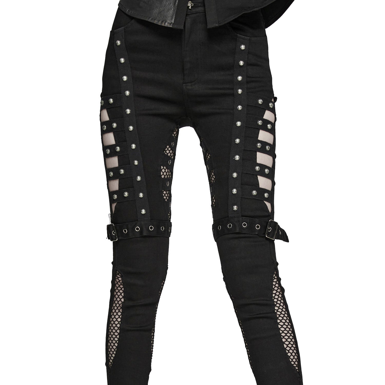 Destaca tu estilo alternativo con nuestro llamativo pantalón con rejilla y aperturas, decorados con tachuelas y hebillas. Con bolsillos delanteros y traseros, estos pantalones ofrecen un toque audaz y único a tu atuendo. Fabricados con una mezcla de viscosa, poliéster, algodón y elastán, son cómodos y perfectos para expresar tu estilo gótico, alternativo o punk. ¡No te pierdas este pantalón con rejilla!