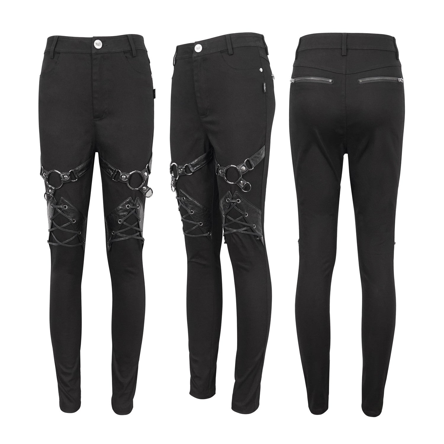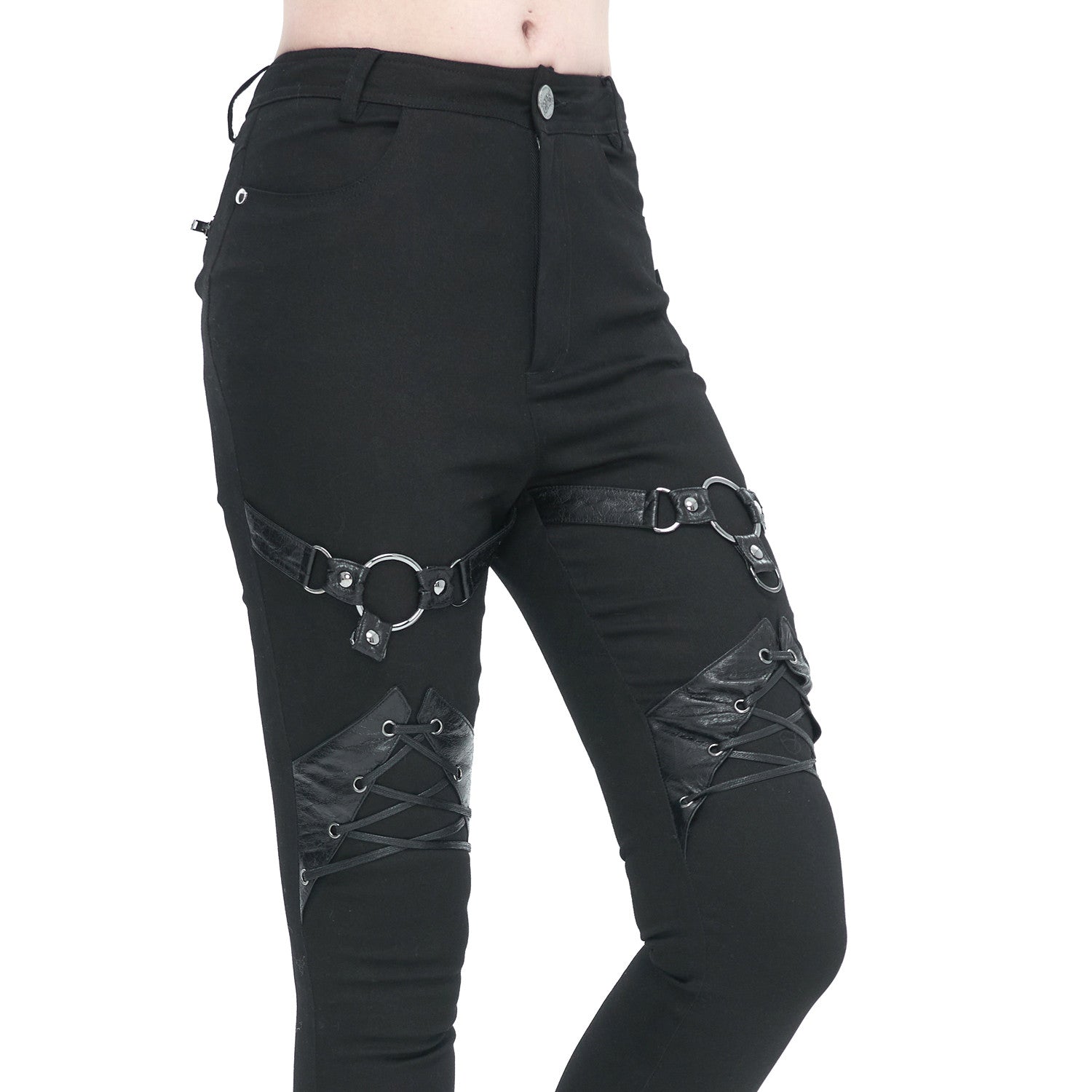 Descubre nuestro pantalón negro con detalles de anillas y cordones cruzados en los muslos, perfecto para expresar tu estilo gótico, alternativo o punk en Internet. Este pantalón destaca por su diseño único que combina anillas y cordones en los muslos, agregando un toque audaz y atrevido a tu atuendo. Fabricado con una composición de 88% algodón, 8% poliéster, 3% spandex y 1% resina, este pantalón ofrece comodidad, durabilidad y un estilo distintivo para destacar en cualquier ocasión.