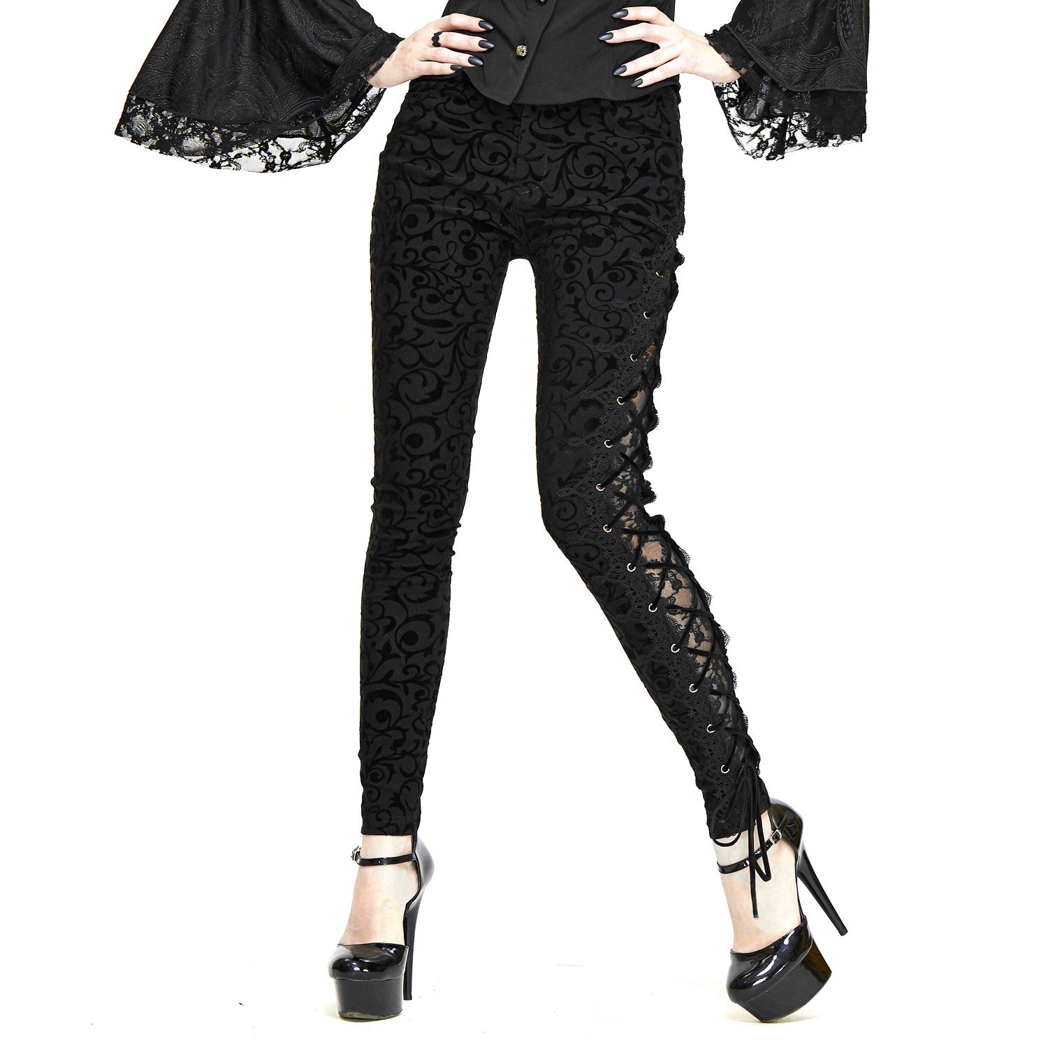 Este pantalón elegante con brocado añade un toque de elegancia gótica a tu look. Su diseño de cordones cruzados y encaje agrega un estilo distintivo que resalta en cualquier ocasión. Fabricado con una composición de 90% poliéster y 10% spandex, este pantalón elegante con brocado garantiza comodidad y un ajuste perfecto para completar tu conjunto alternativo.