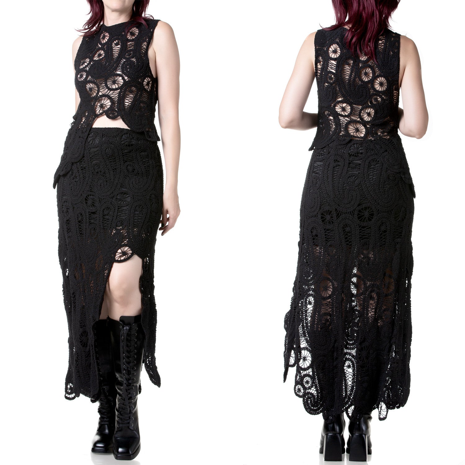 Top sin mangas de guipur calado con diseño asimétrico diseño único.