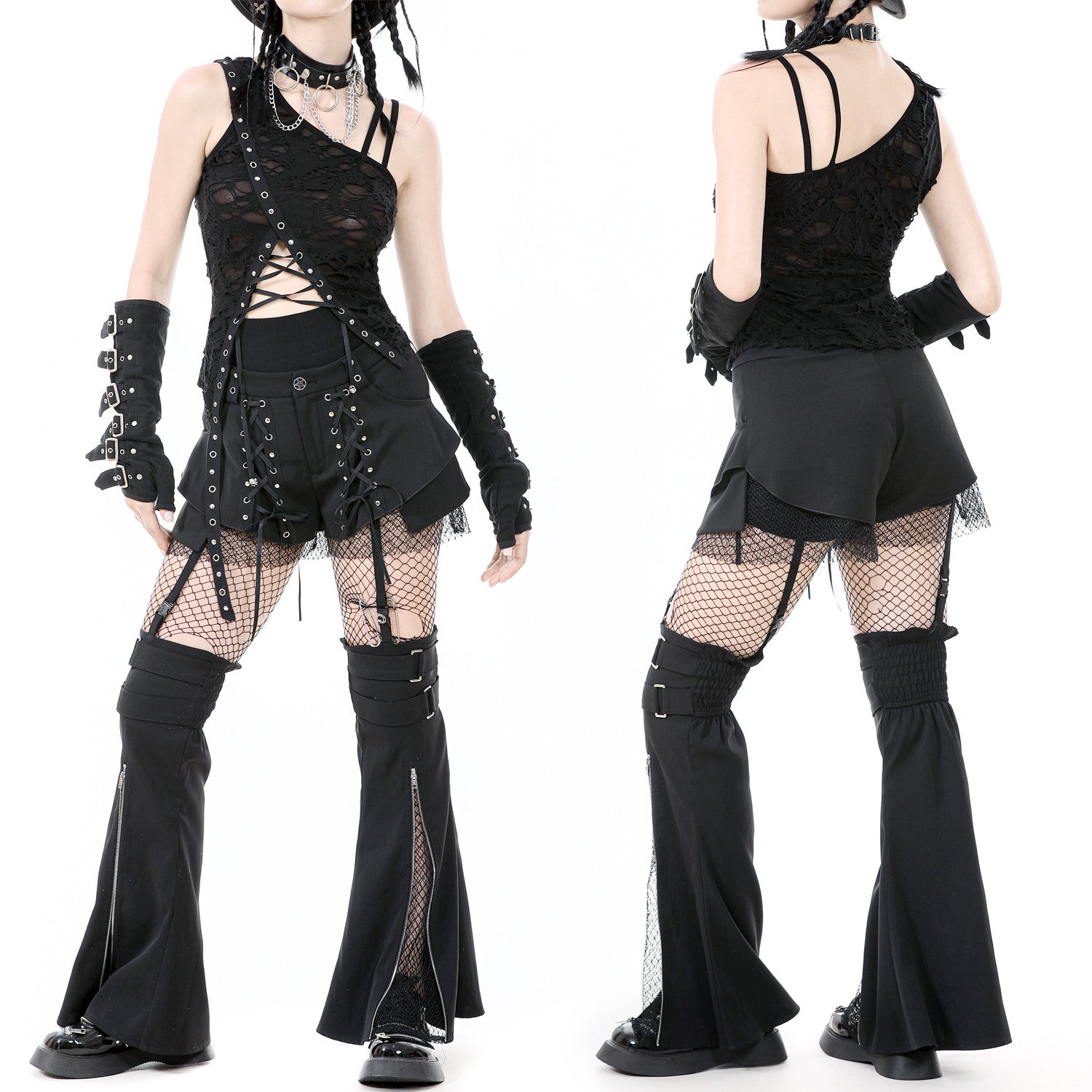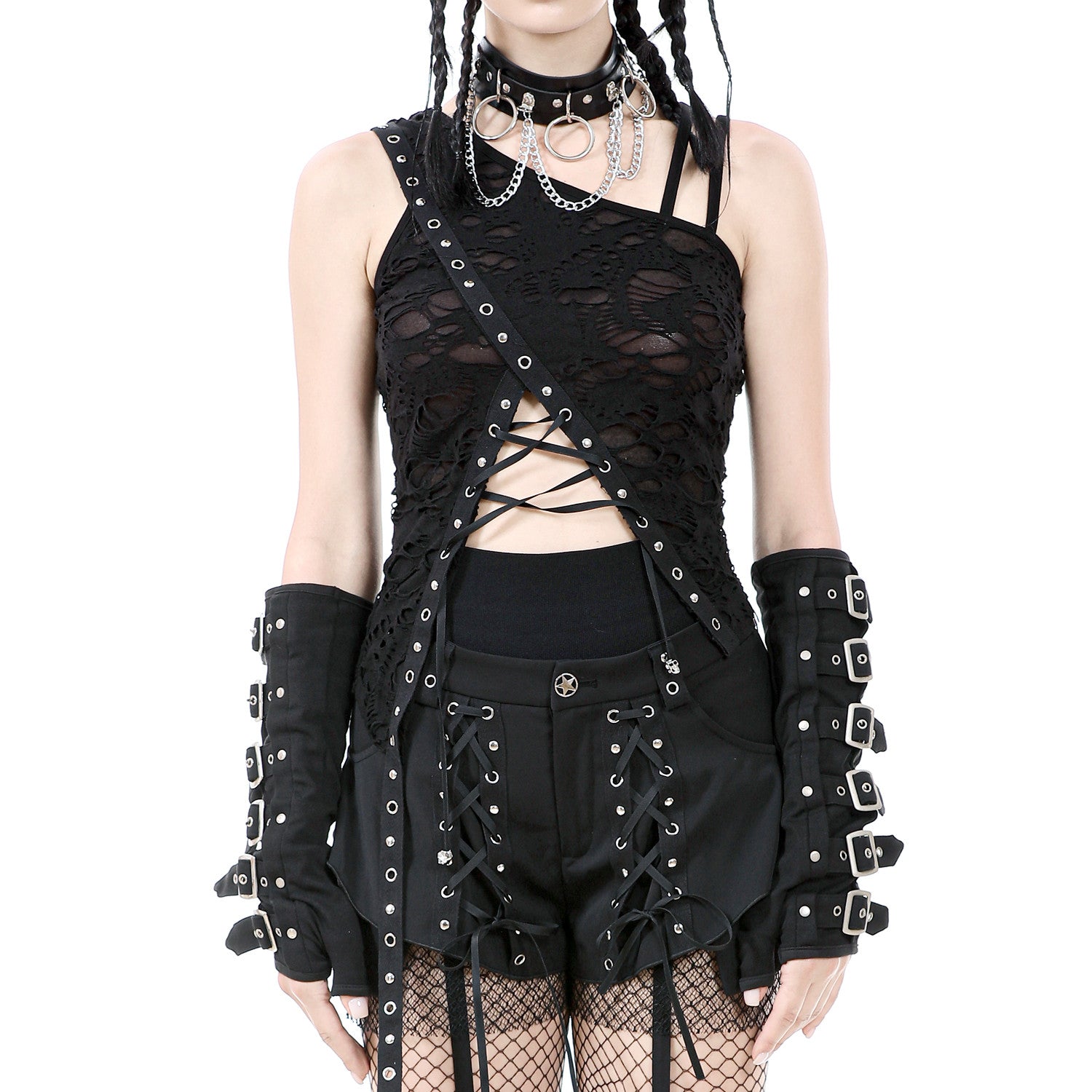 Top asimétrico de inspiración punk, con efecto desgarrado