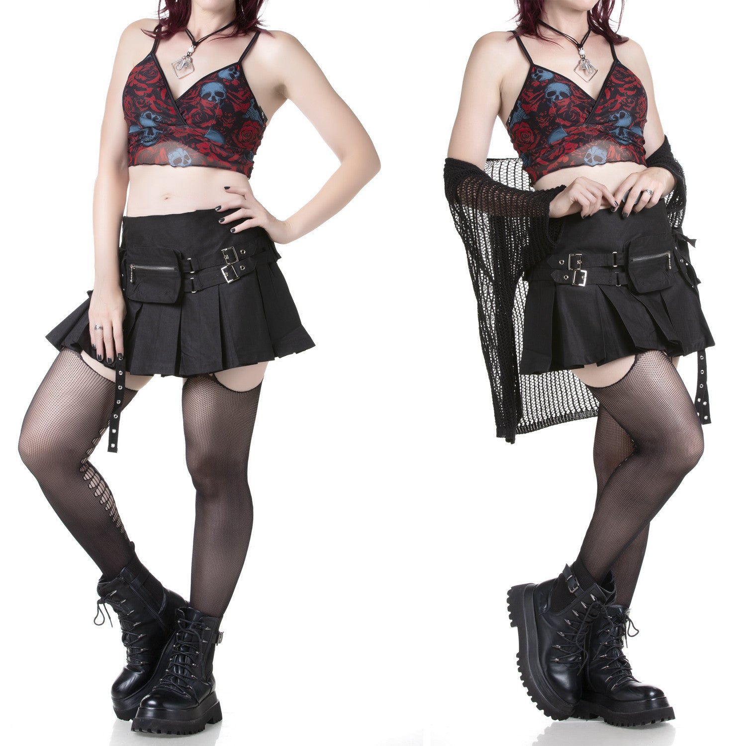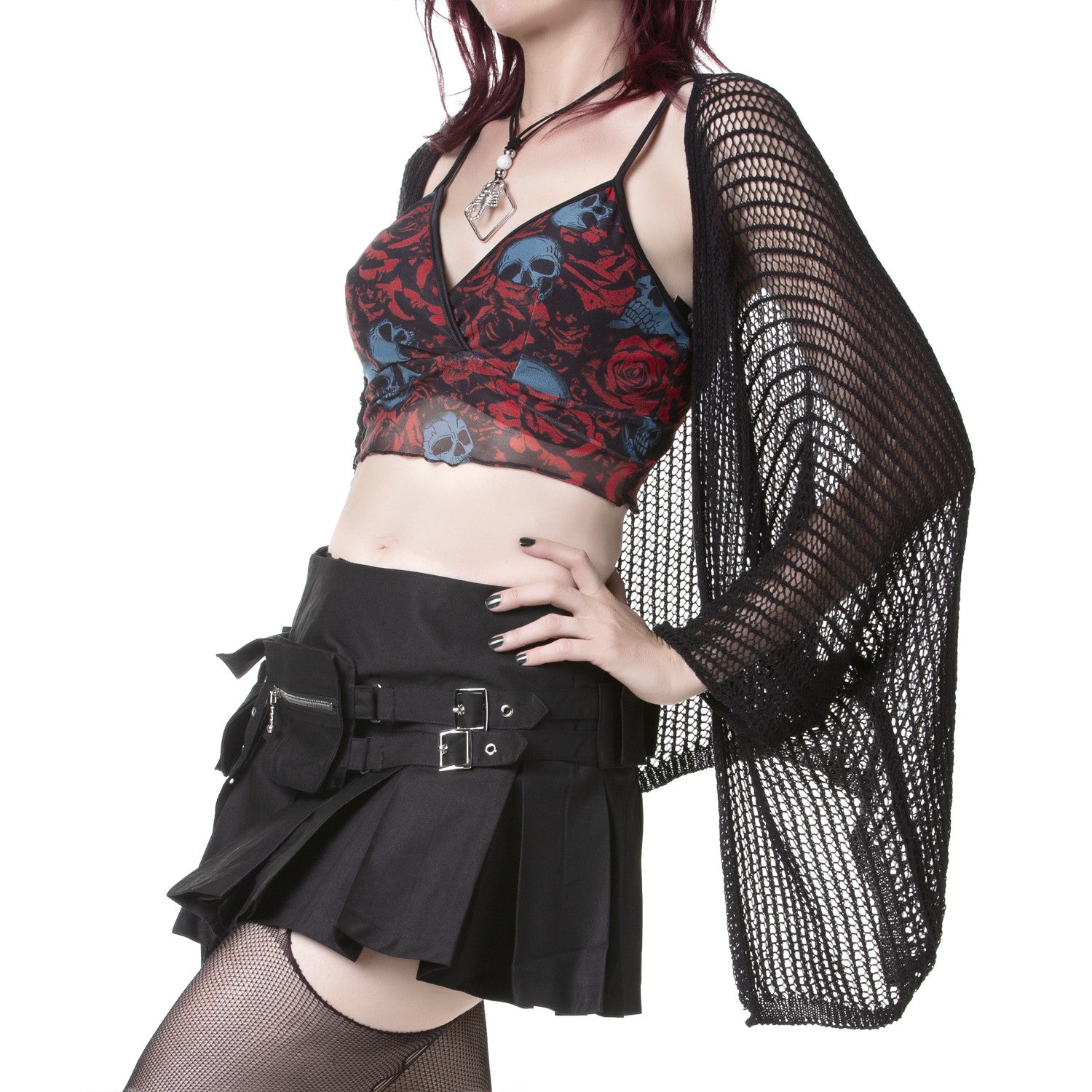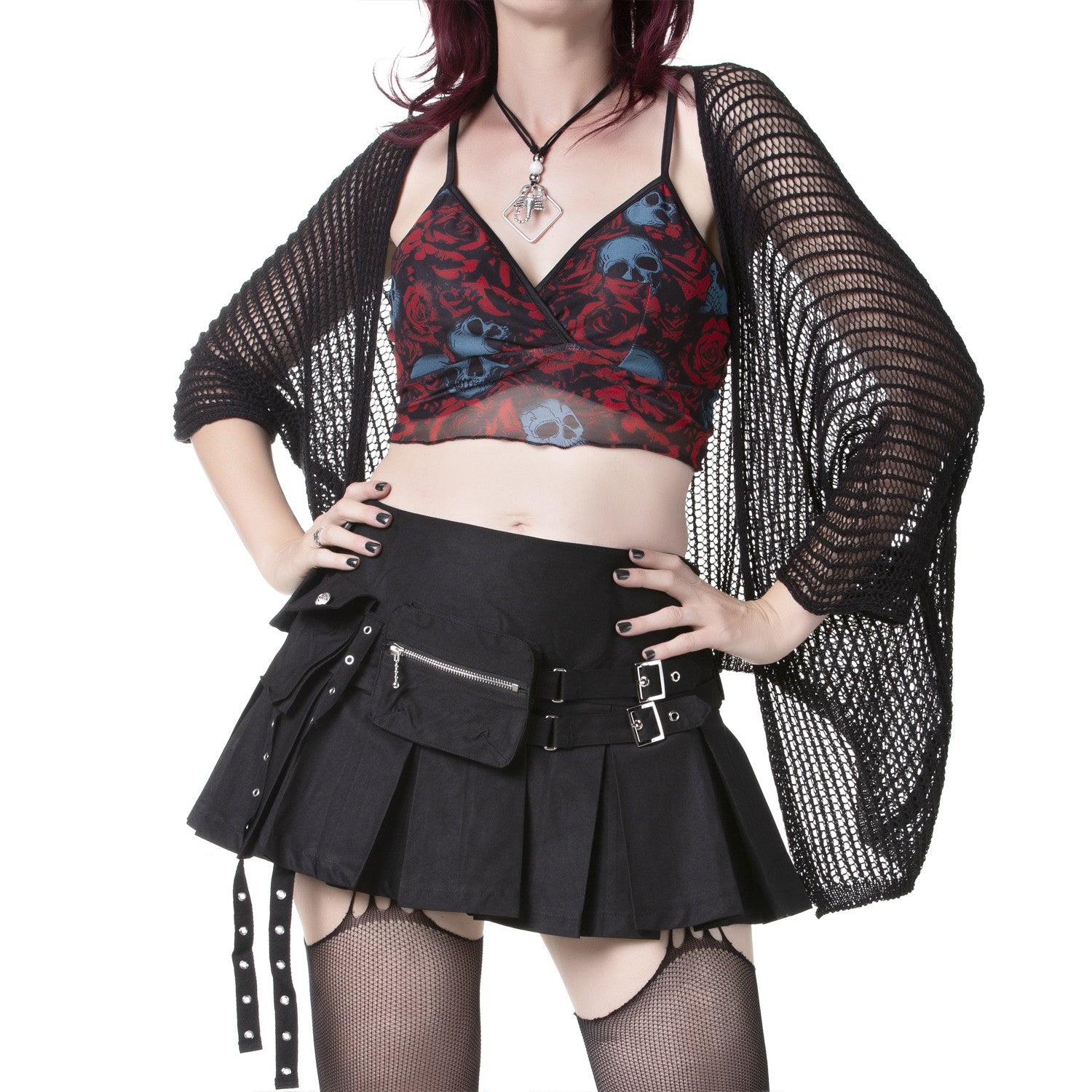 Top de tirantes ajustables, en tul serigrafiado con calaveras, elástico.