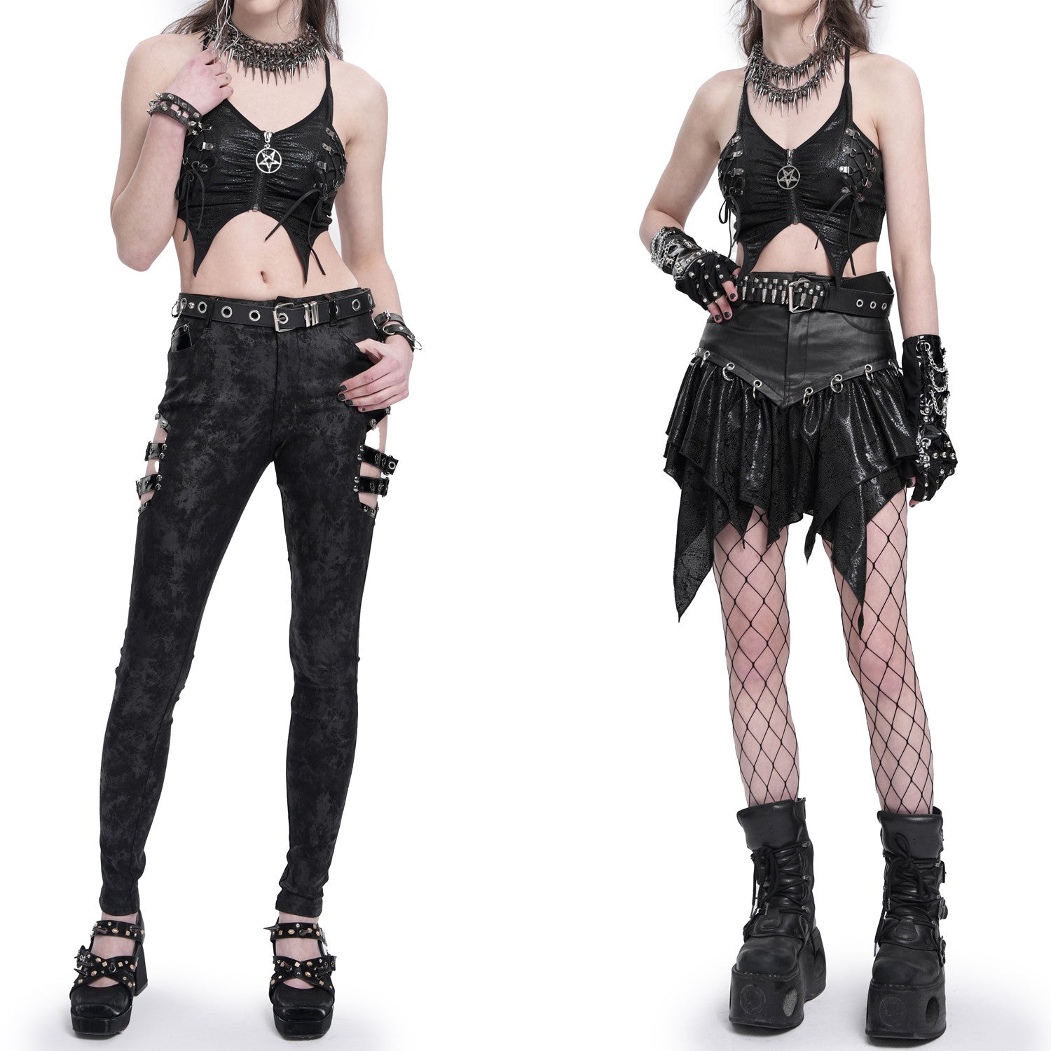 -Top corto con cremallera frontal y colgante de pentagrama metálico