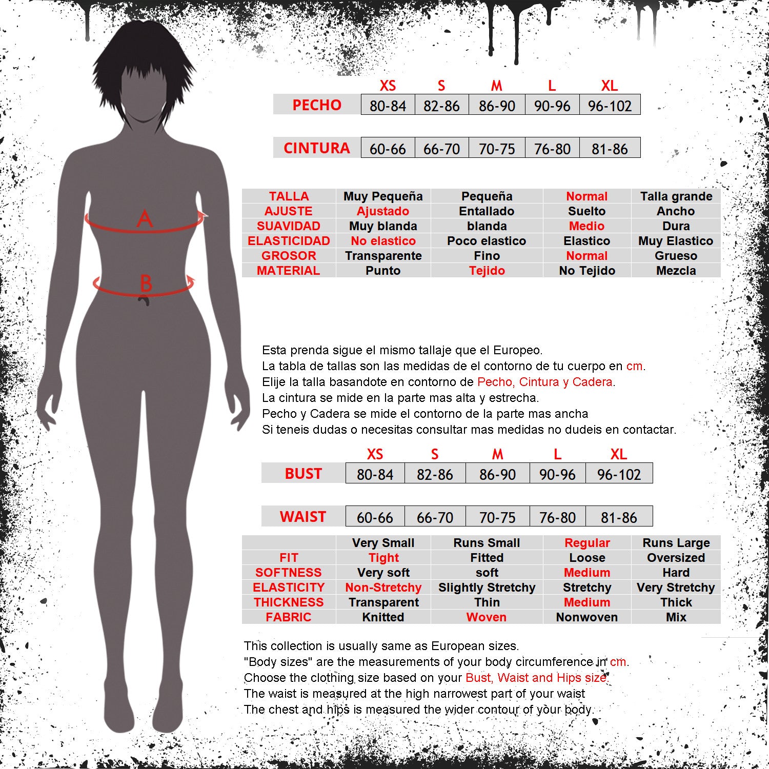 Medidas de la modelo: 80 cm de pecho, 60 cm de cintura, 90 cm de cadera y 172 cm de altura. La modelo lleva la talla XS.