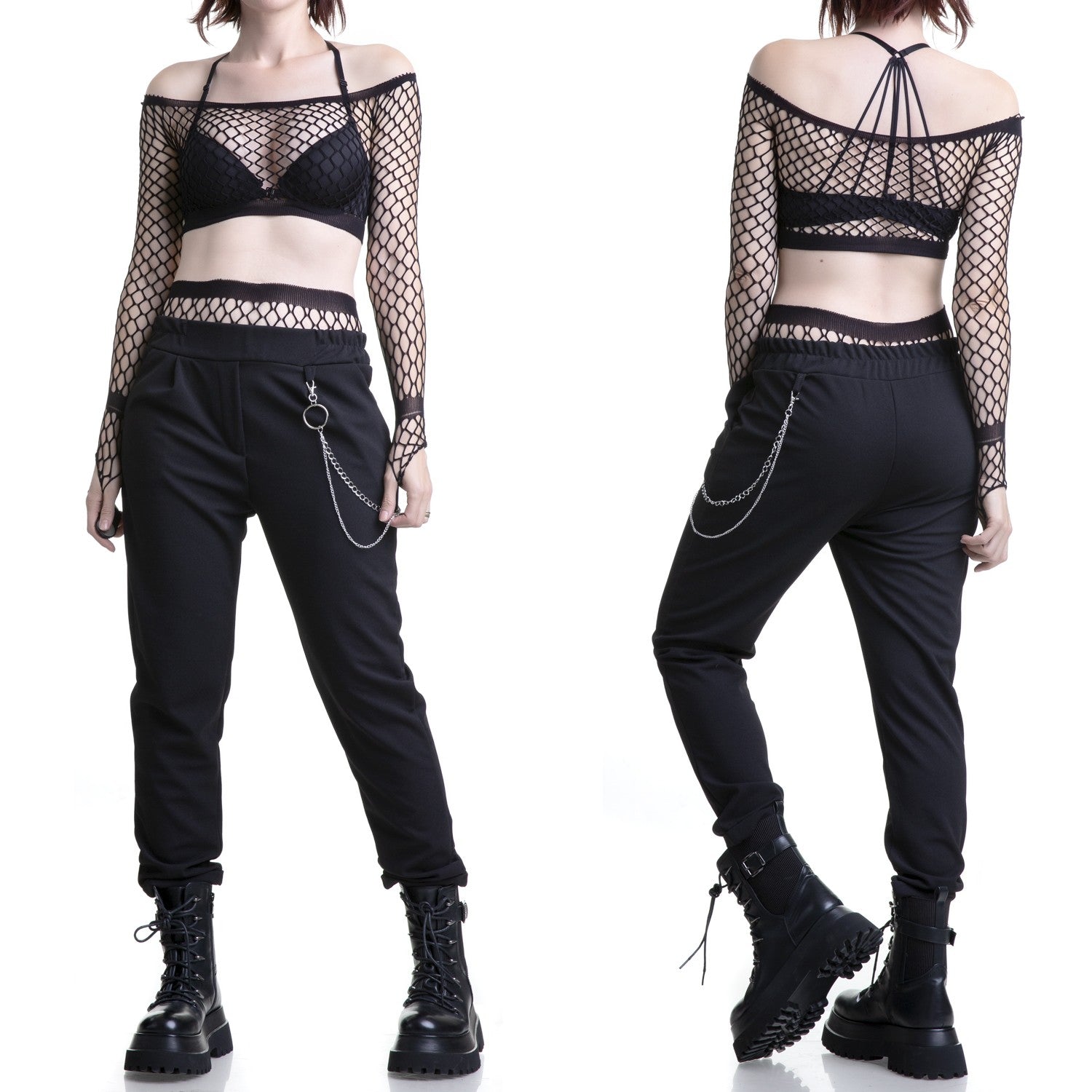 Descubre nuestro conjunto de top y bragas de rejilla de color negro, ideal para un estilo gótico y alternativo. Confeccionado con un 88% de nylon y un 12% de elastán, este conjunto de top y bragas de rejilla ofrece un ajuste cómodo y elástico, perfecto para destacar.