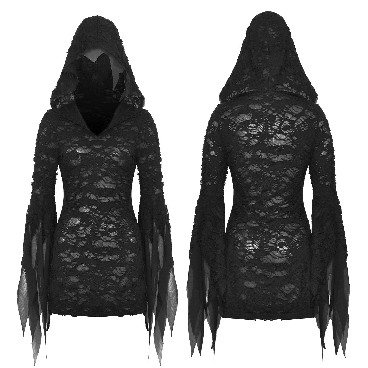 Descubre nuestro vestido corto con capucha en un atractivo tono negro. Su diseño desgarrado y semitransparente lo hace único y lleno de estilo. Las mangas largas añaden un toque distintivo. Fabricado con una mezcla de materiales de alta calidad, compuesta por 65% poliéster y 35% rayon, este vestido corto con capucha no solo destaca por su estética, sino también por su comodidad. Ideal para aquellos que buscan moda gótica, alternativa y punk. ¡Haz una declaración de estilo con esta prenda única en nuestra tienda online!