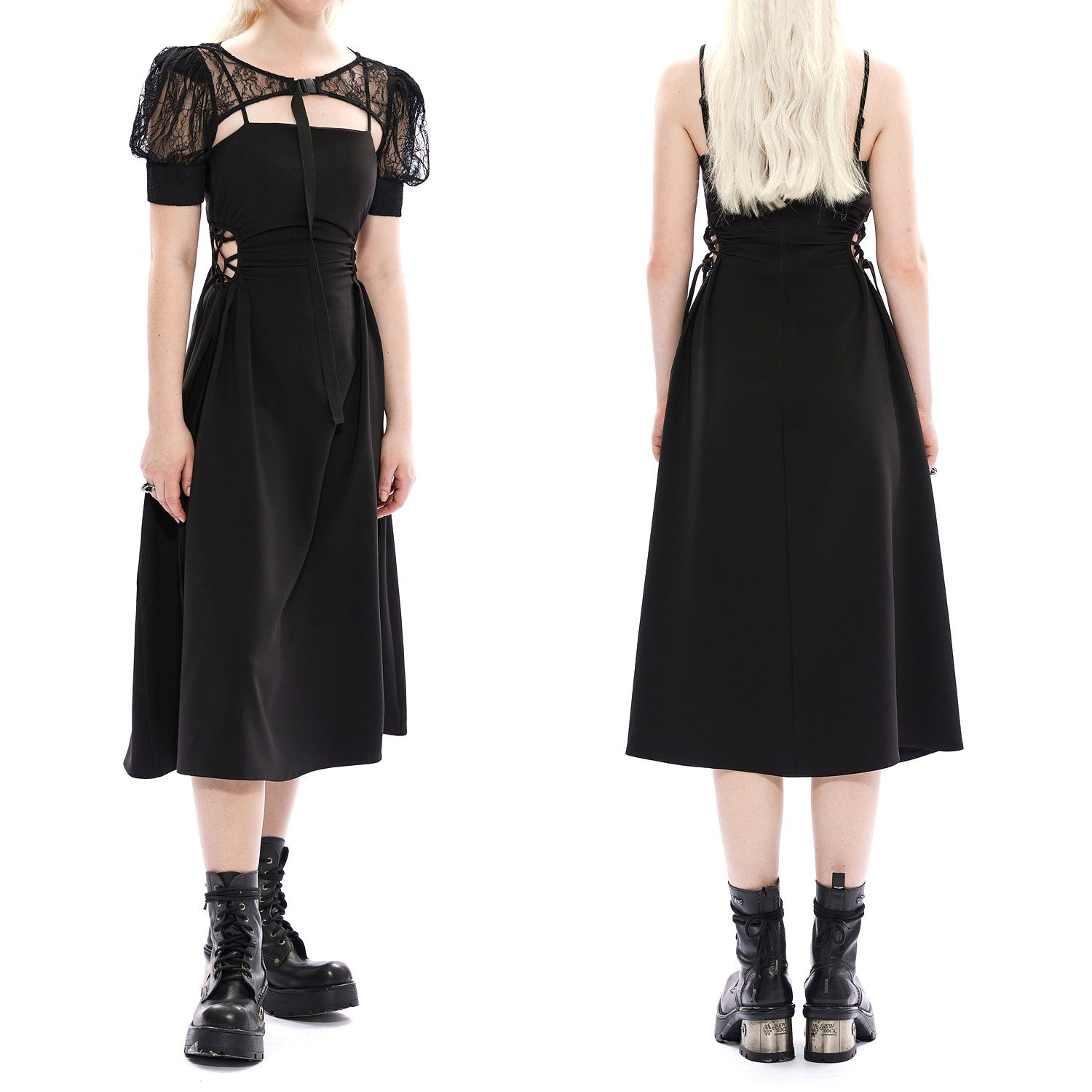 Deslumbra con este vestido largo y negro con tirantes y aperturas laterales, perfecto para lucir un estilo gótico, alternativo o punk. Confeccionado con una combinación de 88% poliéster y 12% elastán, este vestido se ajusta cómodamente a tu figura. La cremallera en la espalda facilita su uso y el forro de 100% poliéster te garantiza una sensación suave sobre la piel. Agrega este vestido a tu colección y haz una declaración de moda en cualquier ocasión.