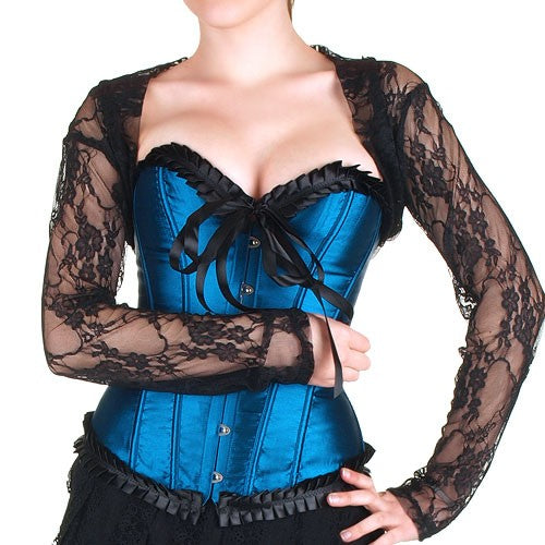 Black long-sleeved stretch lace bolero.