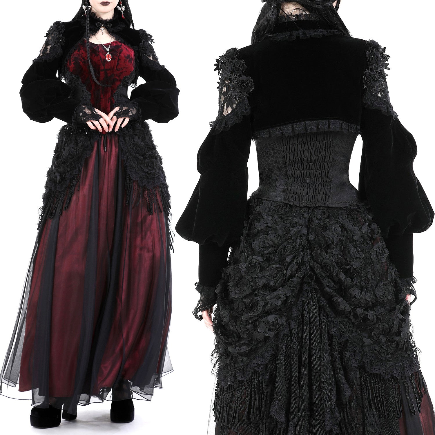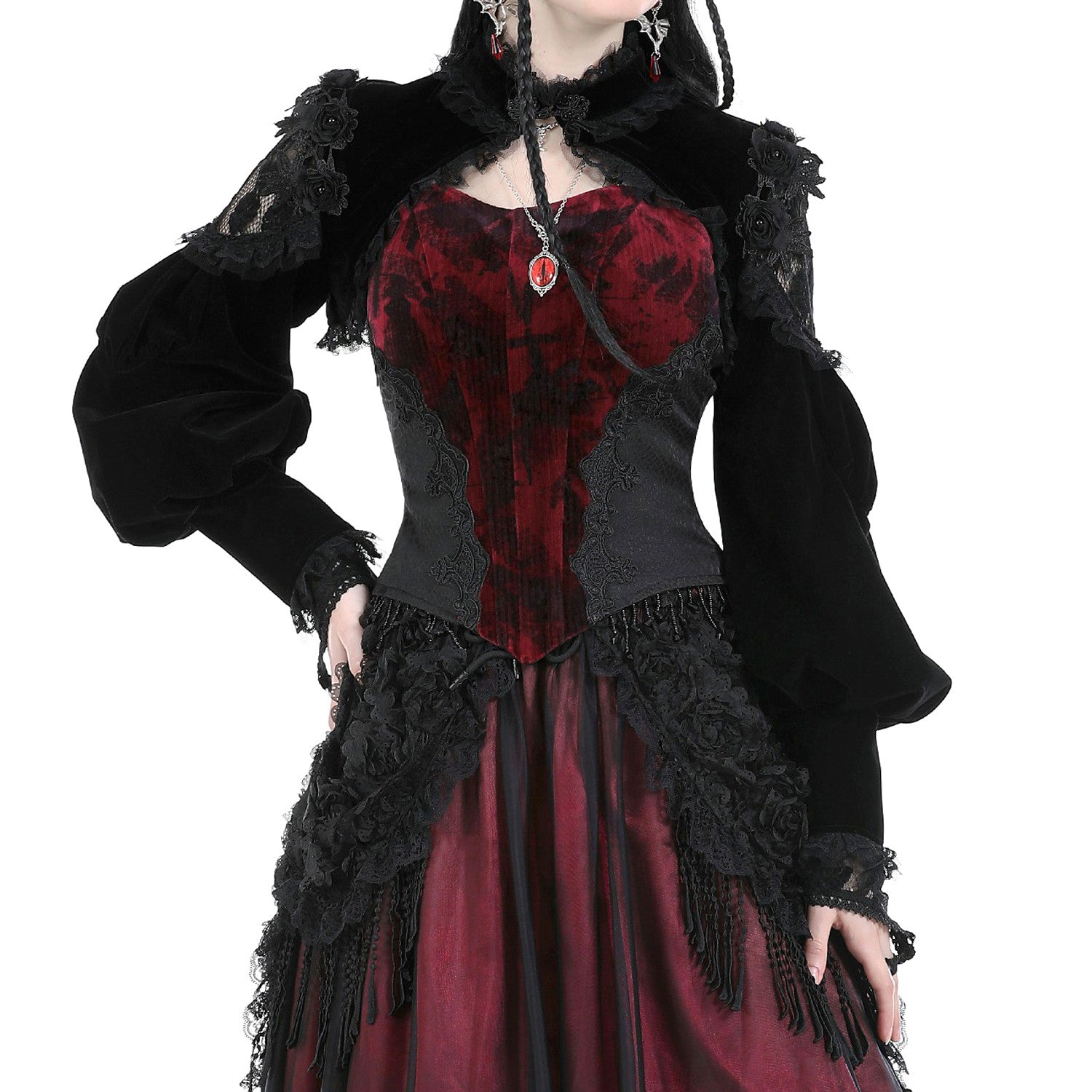 It's time to discover our velvet and lace bolero, an elegant design with long, full sleeves. Made from 100% polyester for lasting quality and unmatched style. Our velvet and lace bolero is perfect for enhancing your gothic and alternative look.