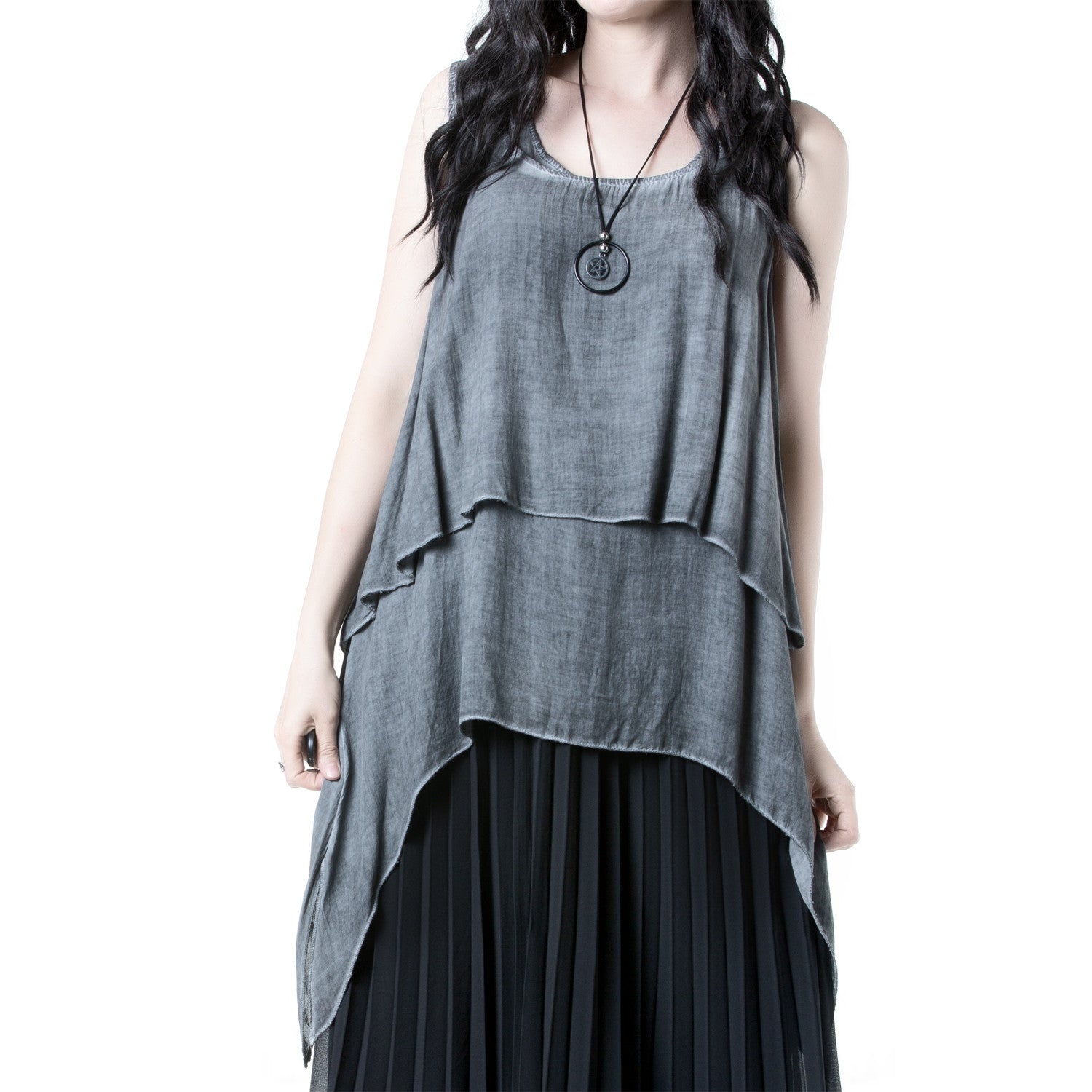 Long T-shirt with a double-layer design, soft to the touch and with a fluid drape.