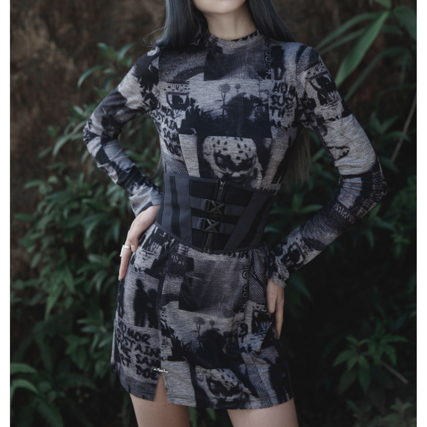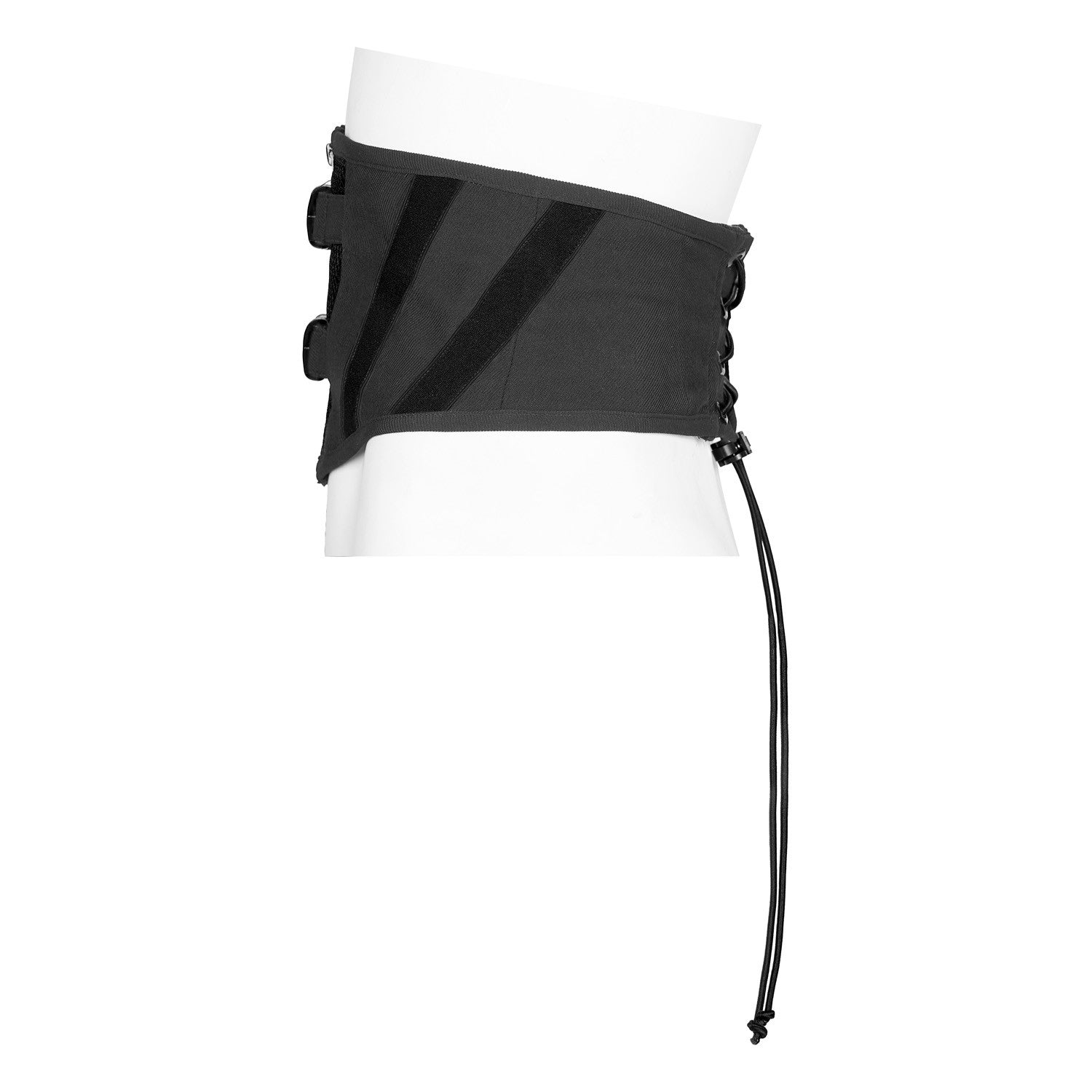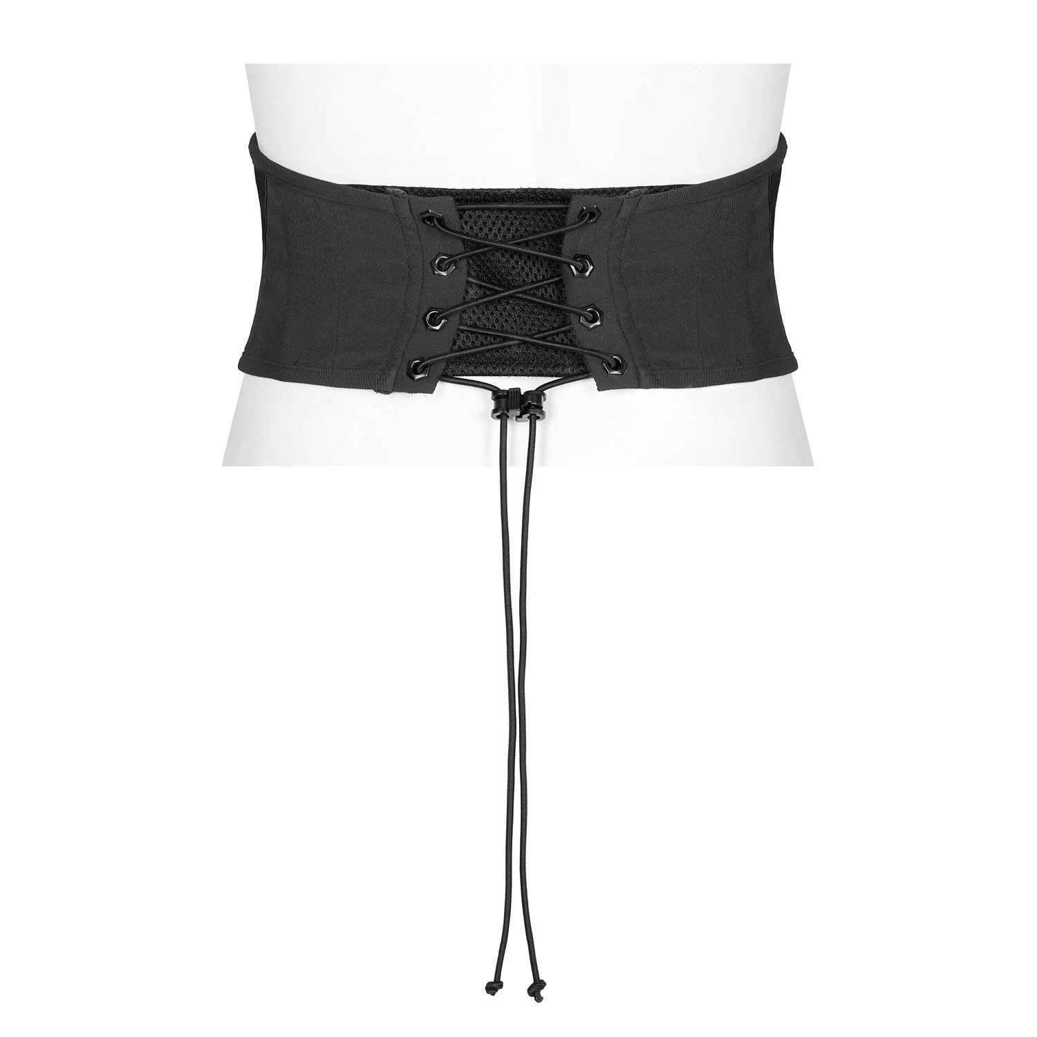 This wide black belt with a mesh insert, buckles, and a zipper at the front is the perfect complement to any gothic, alternative, or punk look. Made from a blend of cotton, polyester, and elastane, it's comfortable and durable. Plus, its laces at the back allow you to adjust it perfectly to your waist, adding a personalized touch to your style. With a striking, high-quality design, this belt is a must-have for any alternative fashion lover. Let your waist speak for itself with this stunning belt!