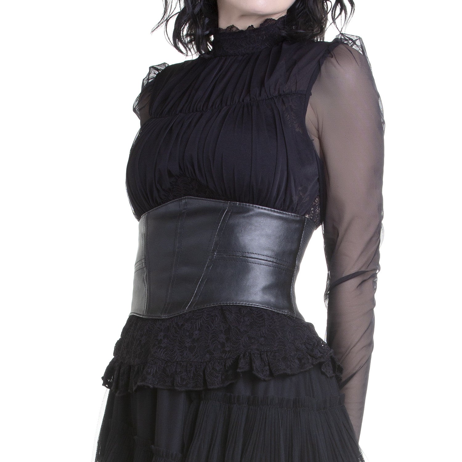 Made from high-quality materials, this wide elastic belt is not only stylish but also durable. Add a distinctive touch to your outfit and complete your alternative look with this versatile accessory.