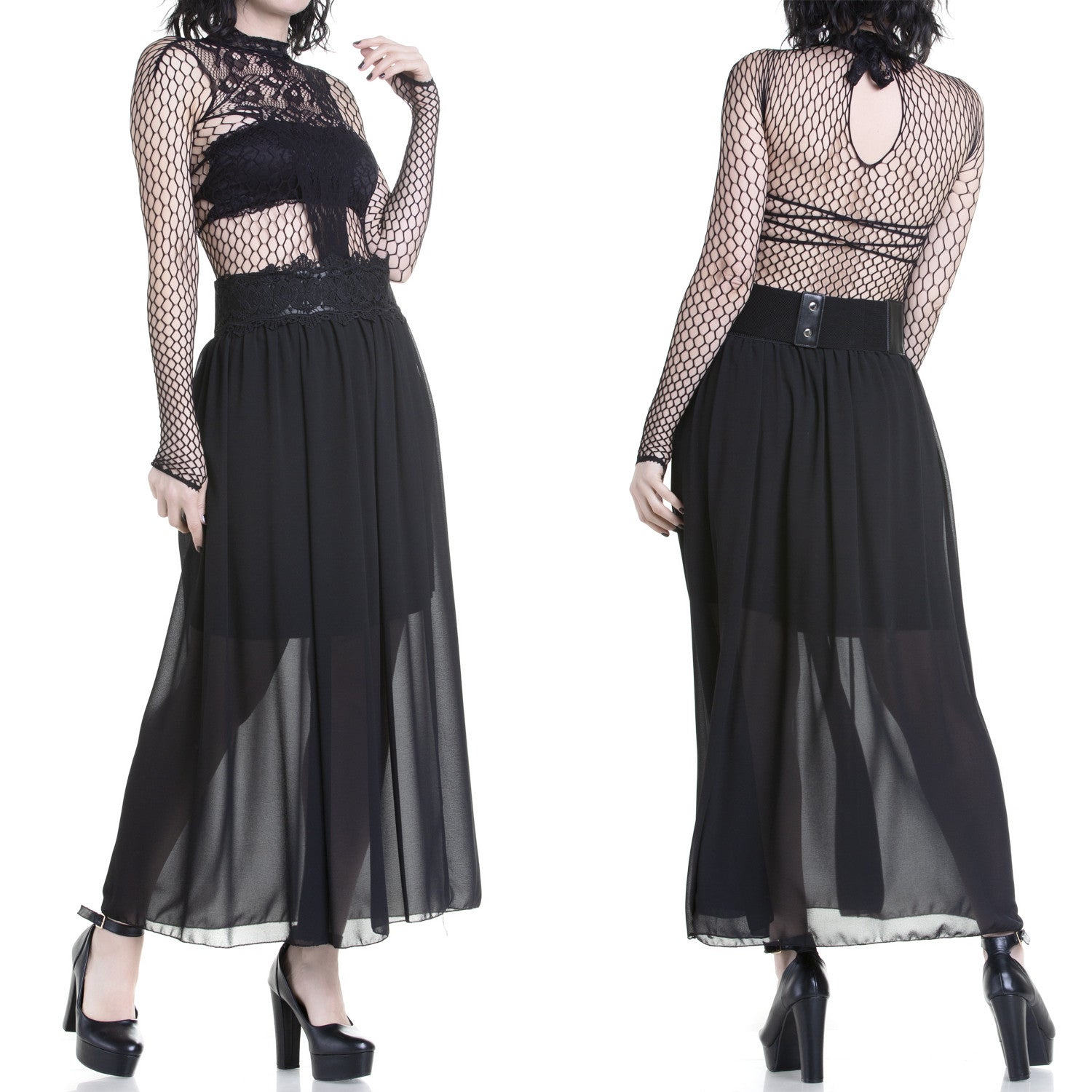 Highlight your gothic, alternative, or punk style with our wide, elastic black belt, embellished with guipure weave on the front and with a snap button closure at the back. A versatile accessory that adds a distinctive touch to your look.