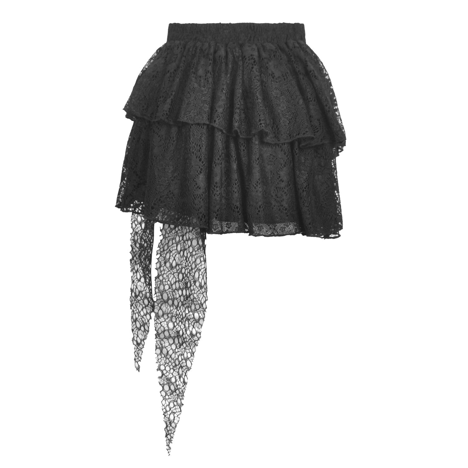 Discover our stunning short, asymmetrical black skirt with crisscross laces, decorative buckles, and a silver cross. This skirt is perfect for those seeking a gothic, alternative, and punk style. It's made from a high-quality 90% nylon and 10% polyester material. Don't miss the opportunity to add this unique garment to your collection at our online store for gothic, alternative, and punk clothing and accessories. Complete your bold, rebellious look with this eye-catching skirt and make a style statement.