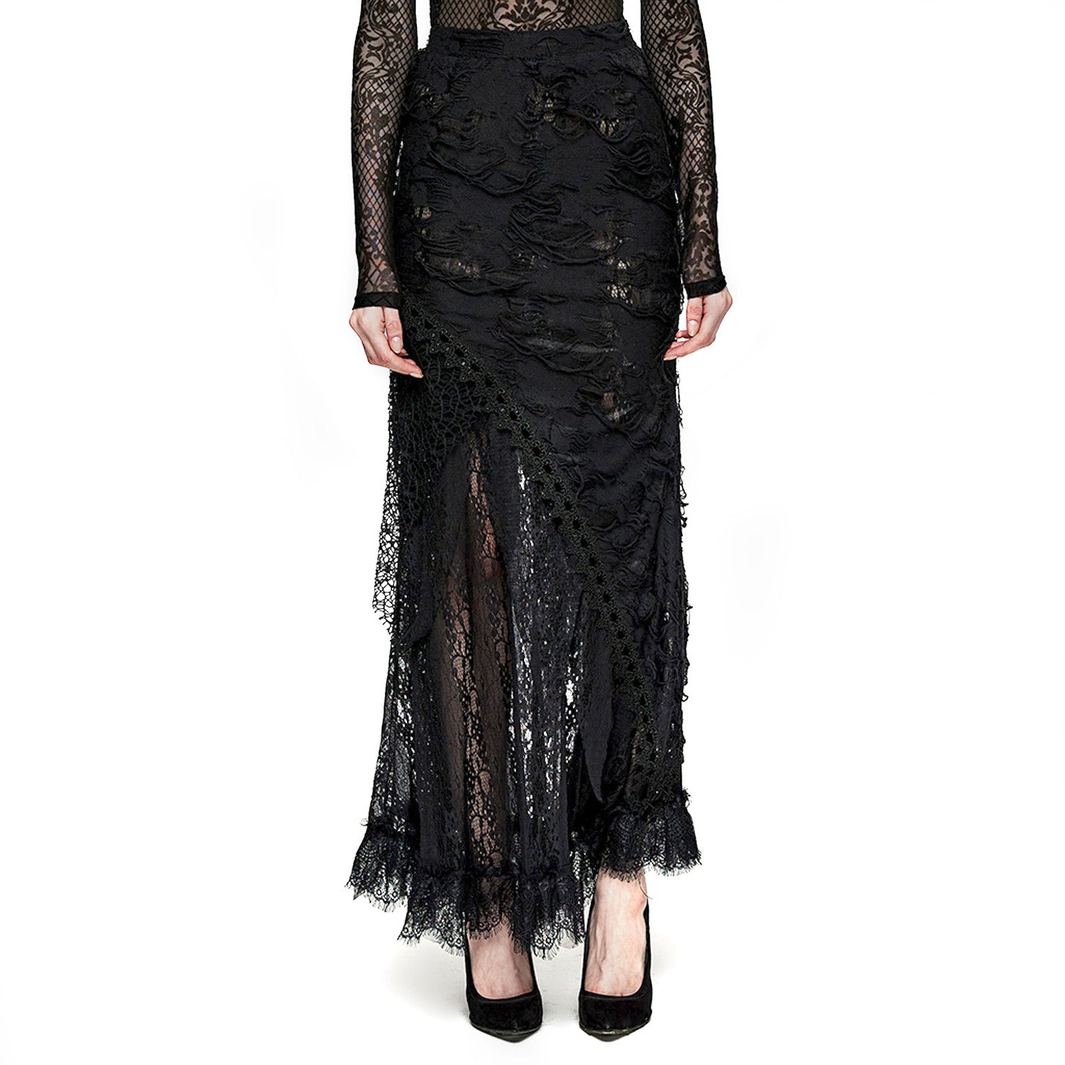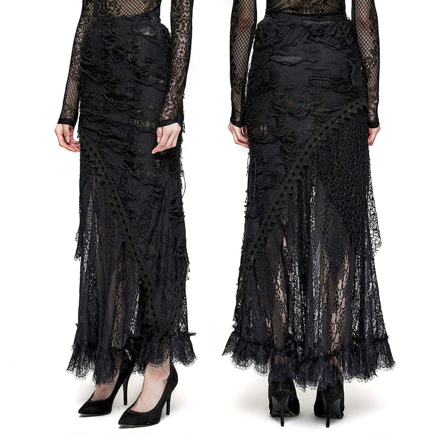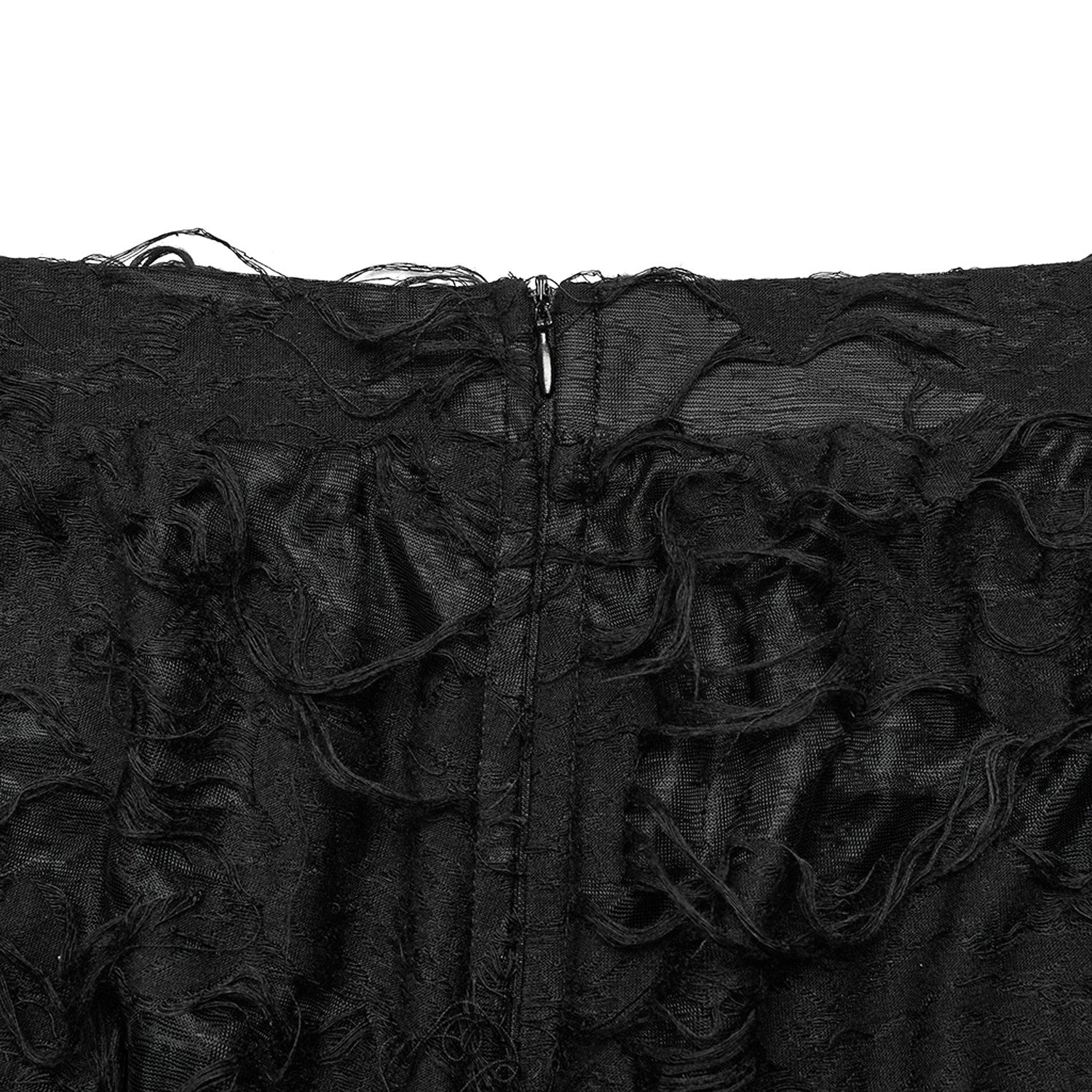 Explore our stunning long, semi-sheer black skirt, featuring a bold, asymmetrical, ripped design that defies convention. This skirt makes a unique style statement that will make you stand out on any occasion.