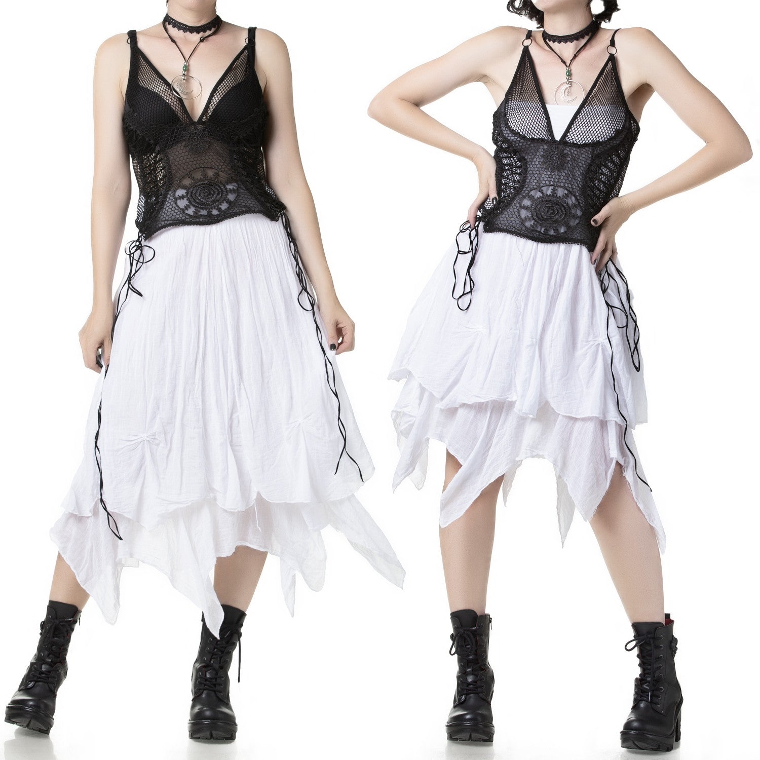 White cotton skirt with pointed hems, ideal for creating your everyday looks with a special touch.