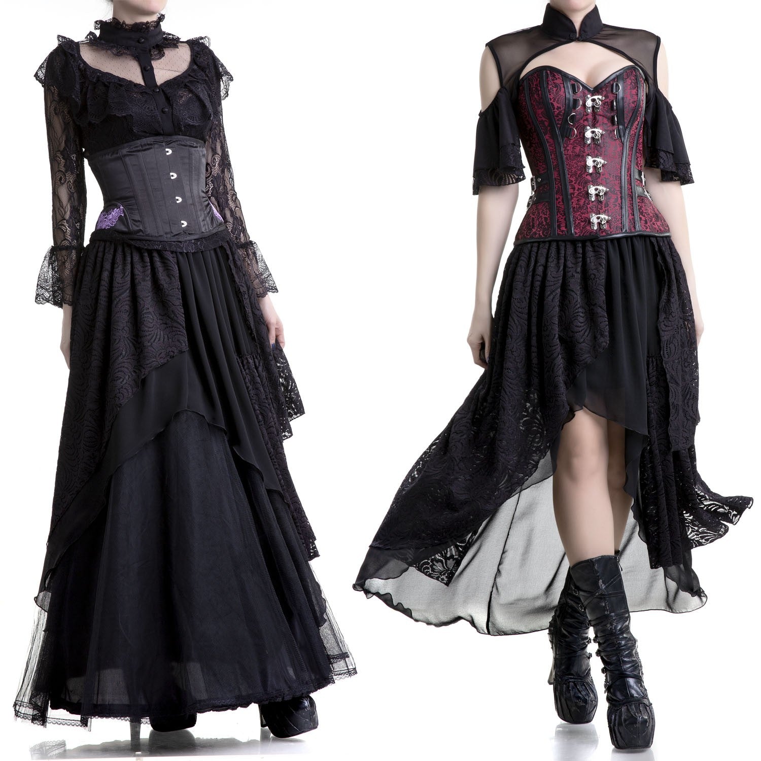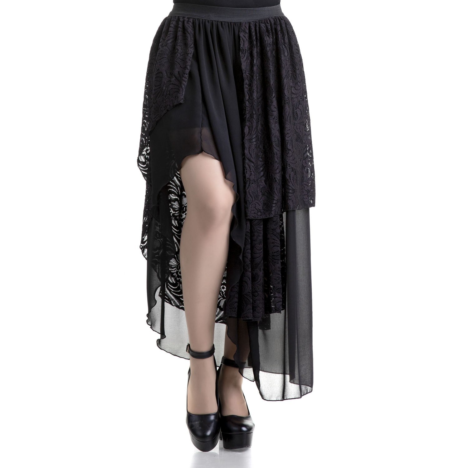 Long skirt with layers of tulle and lace. Asymmetrical design with a slit.