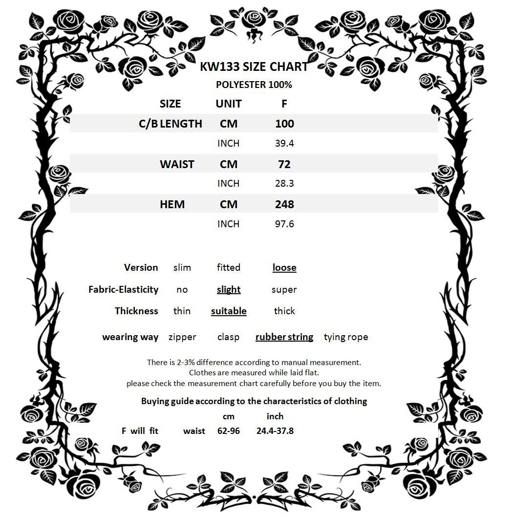 Long red skirt with a lace and velvet overlay. Elastic waist with drawstring.