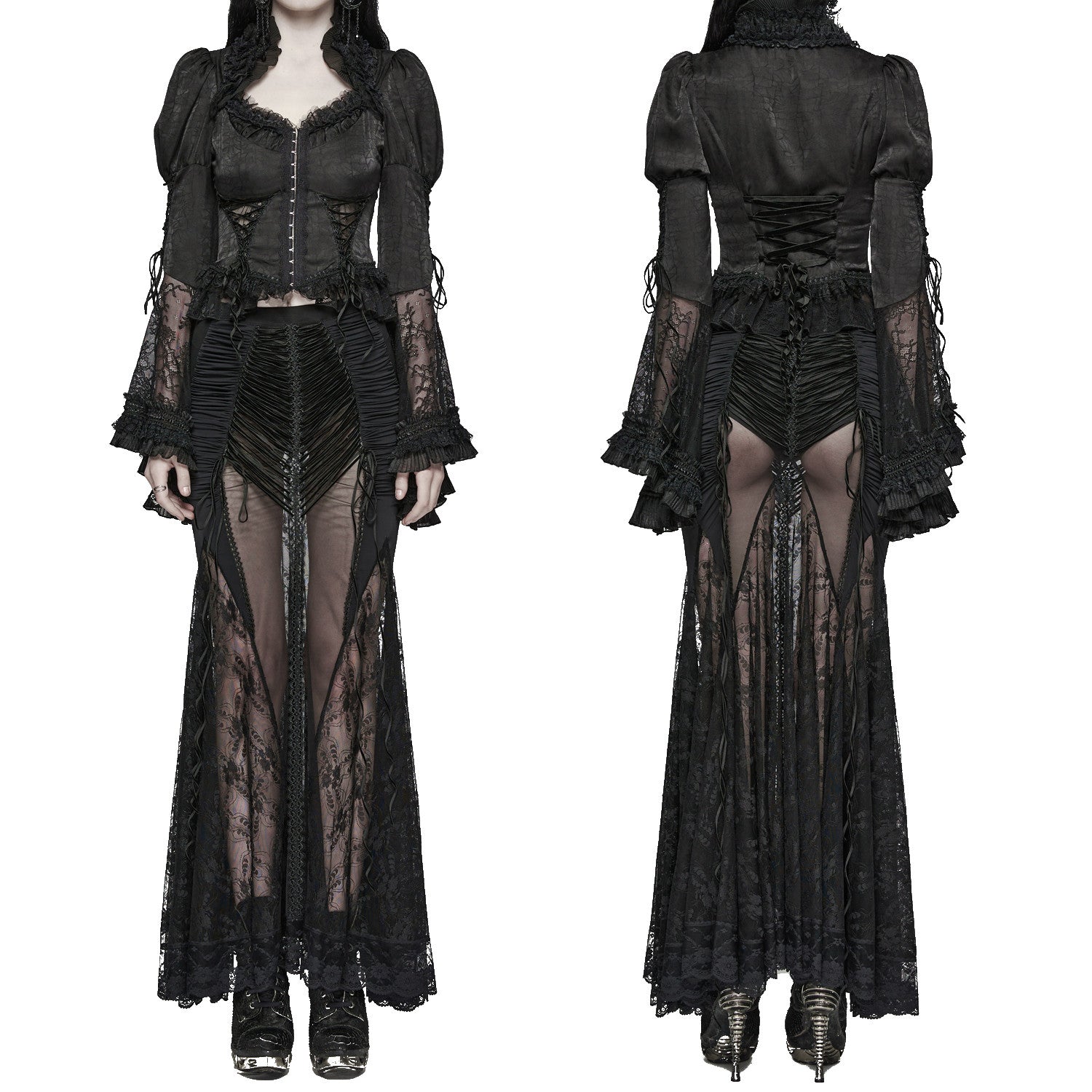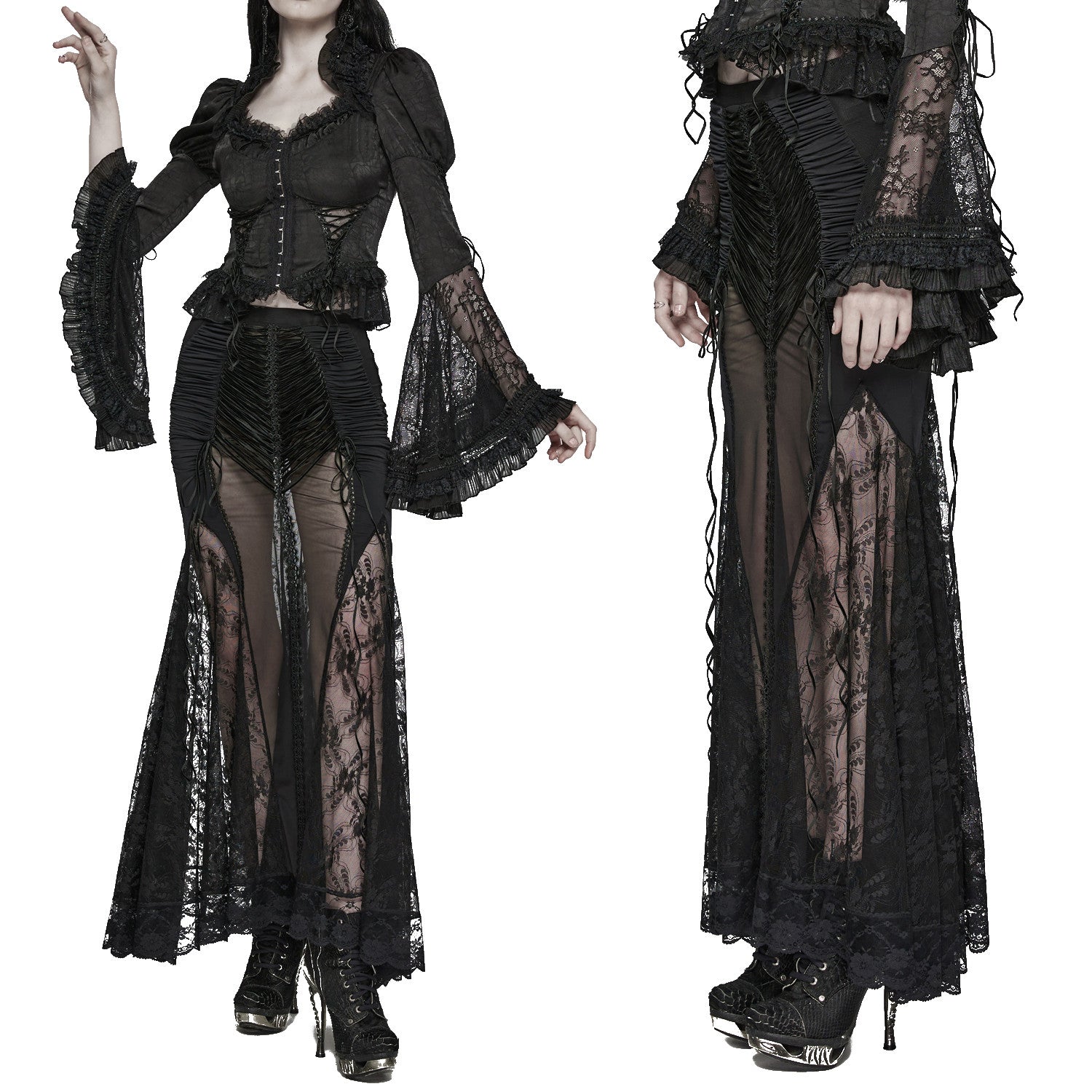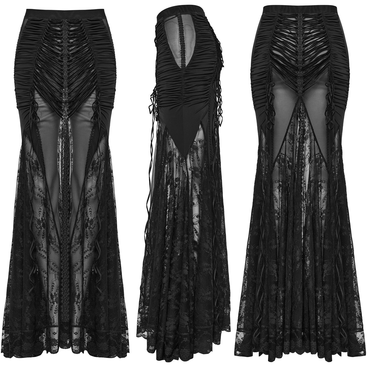 Explore gothic elegance with this sheer tulle and lace skirt, designed in a mermaid style. The waist is adorned with black fabric gathers, adding a distinctive touch. Ideal for those looking to stand out with an alternative and sophisticated style. This sheer skirt's composition: Polyamide, elastane.