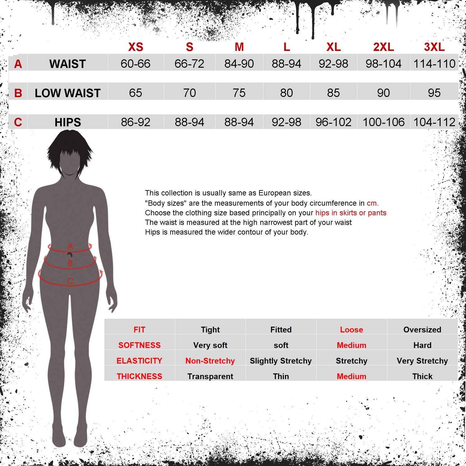 Wide-leg black jaggers with an asymmetrical design and pockets. Faux leather with a pentagram on one thigh and decorative chains on the side.