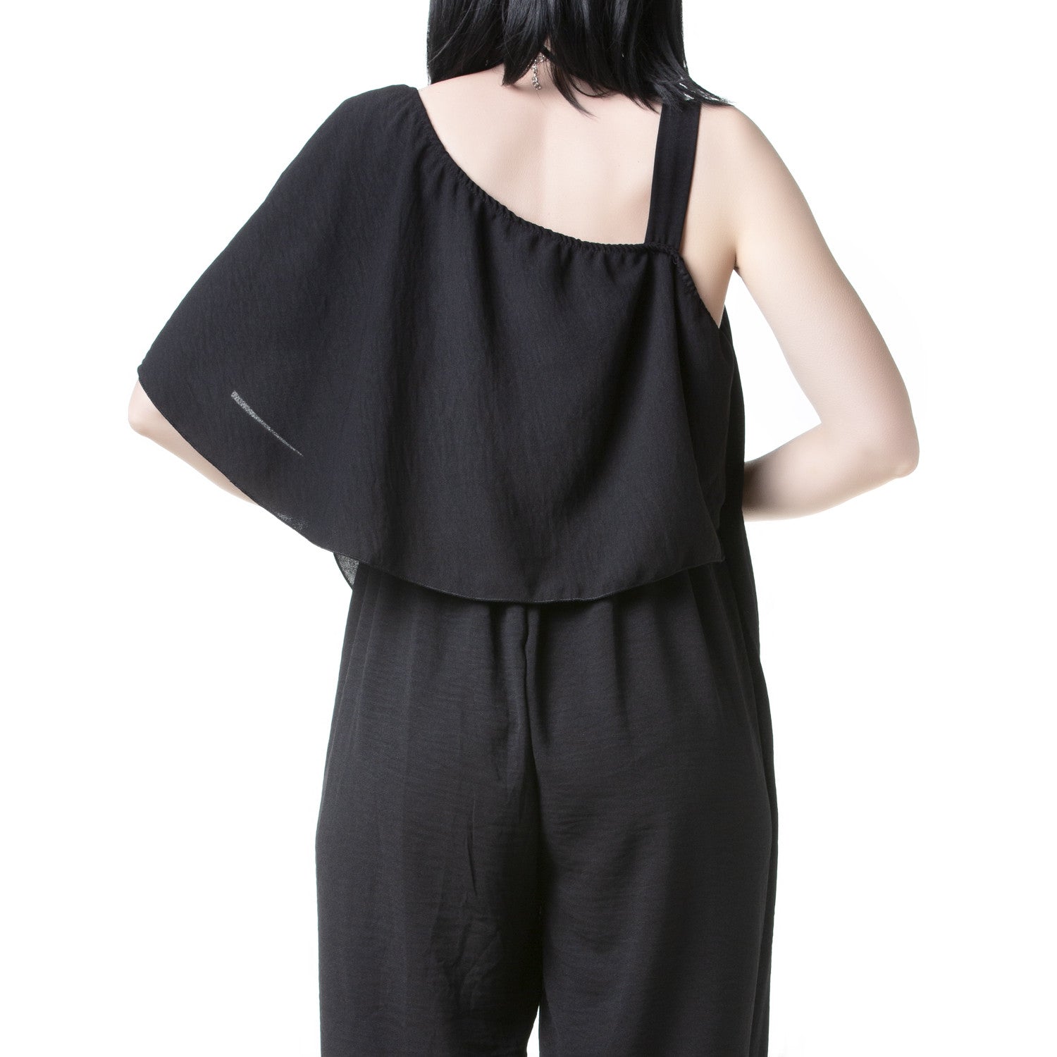 This summer, you can't miss this incredible black jumpsuit with a wide, asymmetrical design. Made of 95% polyester and 5% elastane, it guarantees a comfortable and beautiful fit. Our black jumpsuit is perfect for standing out on any occasion!