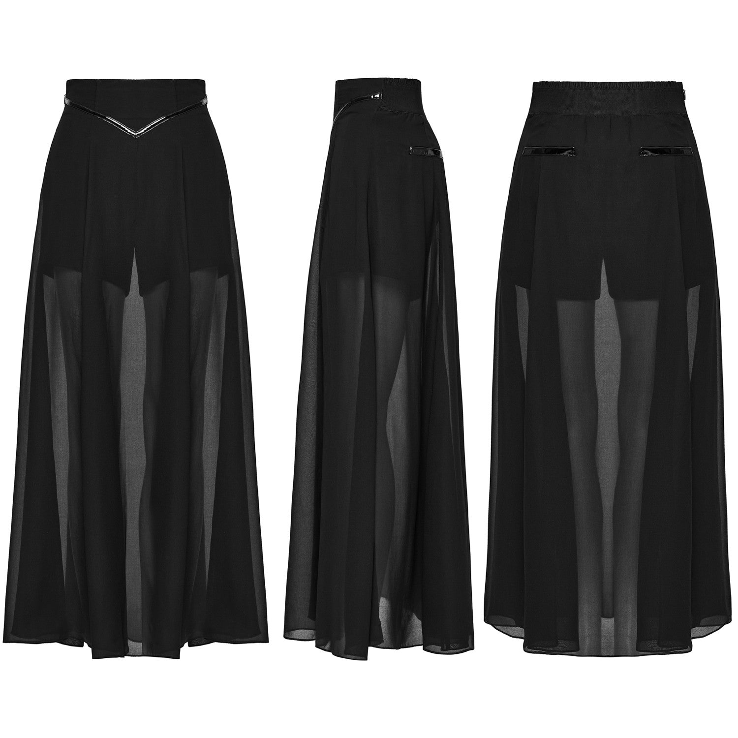 Stand out in our unique black tulle shorts, featuring a long, sheer tulle skirt that adds a touch of mystery to your gothic and alternative style. These shorts allow you to look fashionable without sacrificing comfort. The side zipper provides an easy and secure fit.