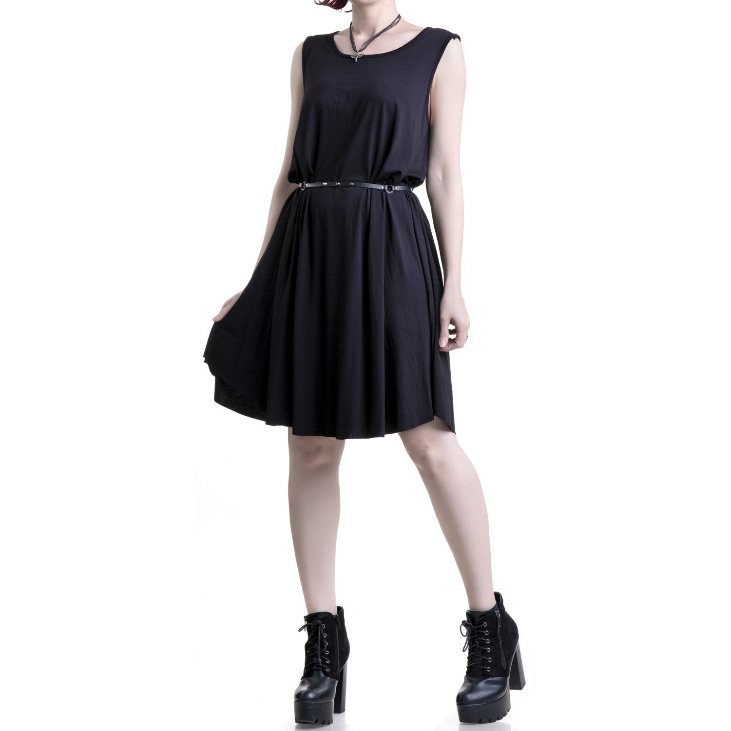Wide black dress with straps, designed in a loose and comfortable silhouette. Made of stretch fabric, it fits perfectly to the body.
