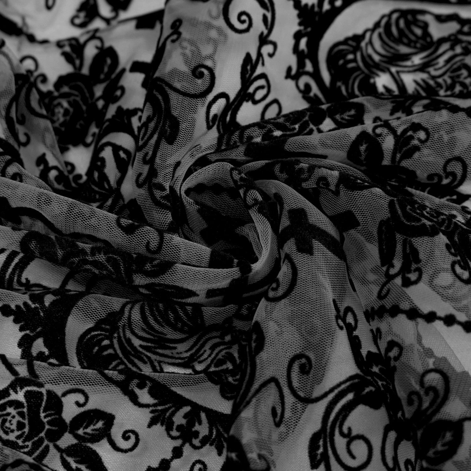 Semi-transparent fabric with Baroque lace motifs