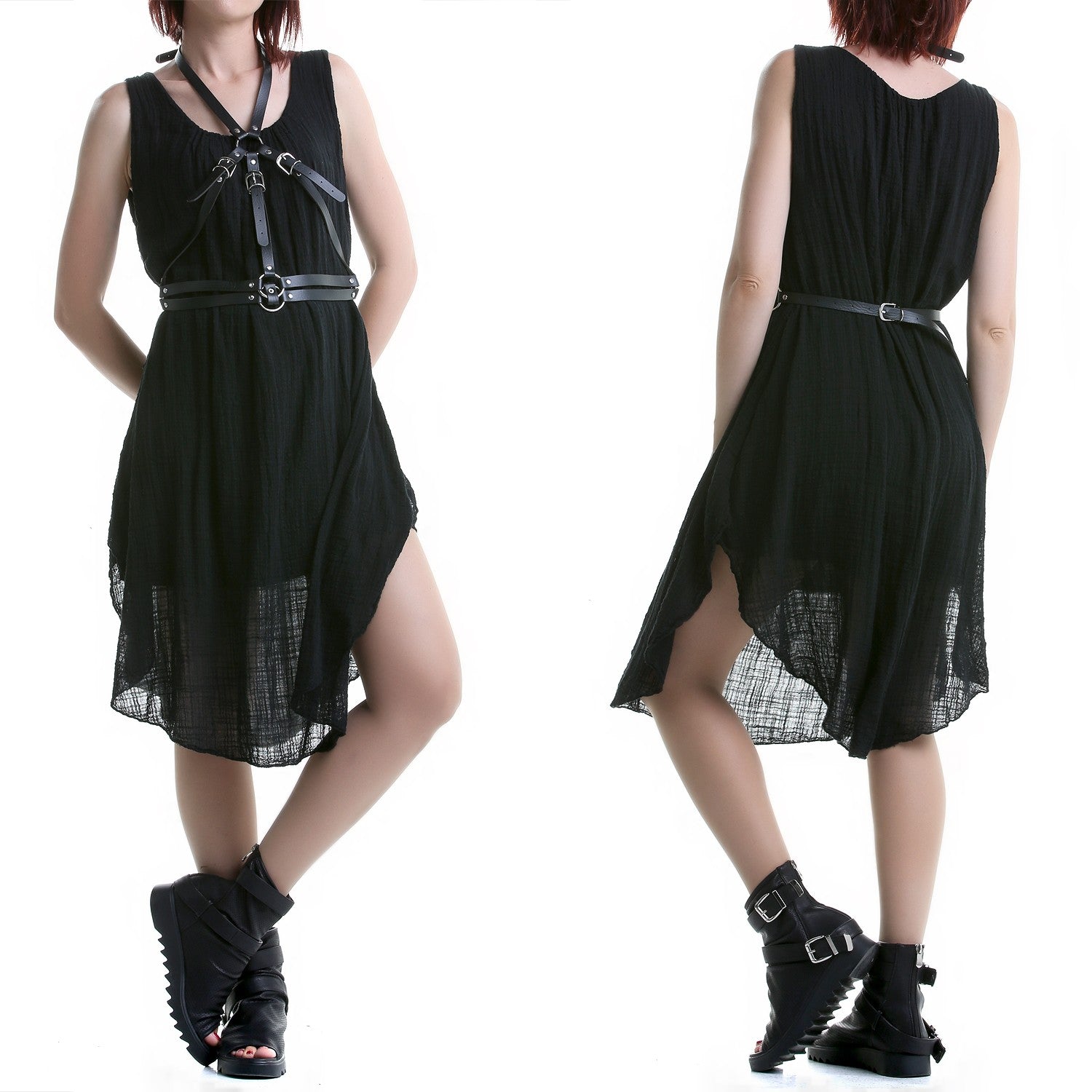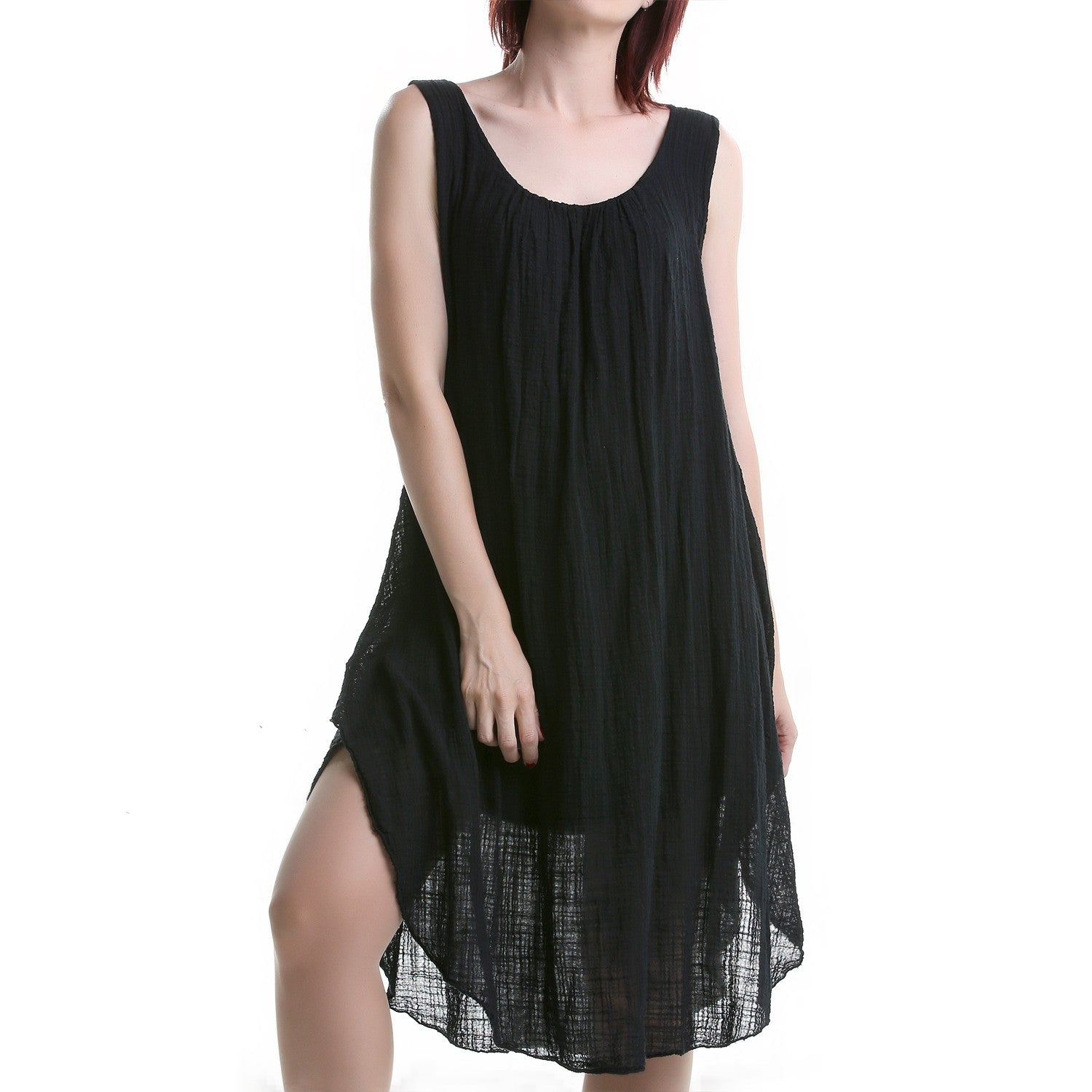 Black two-layer dress. Thin fabric, ideal for summer. Two-layer dress with straps. Round neckline.