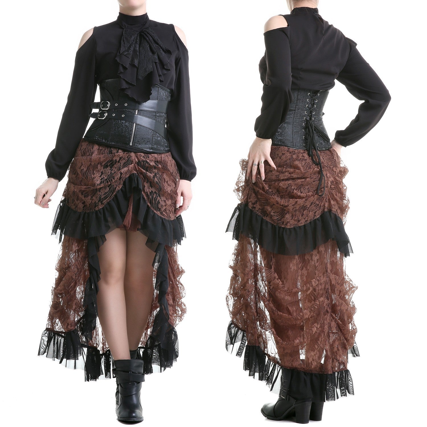 T-shirt noire et élastique à manches longues. Épaules ouvertes. Le jabot peut être enlevé et remis.