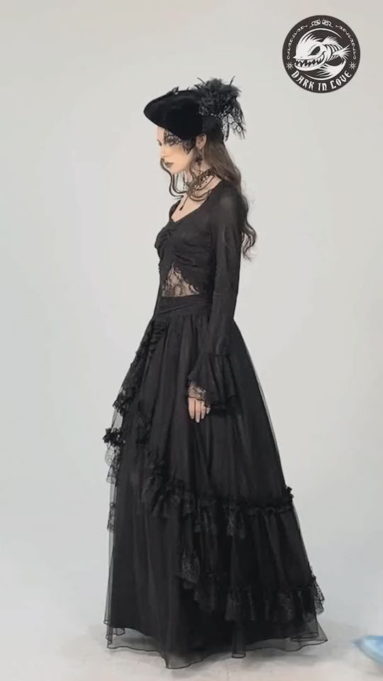 T-shirt élégant et semi-transparent noir avec des détails en dentelle et brocart, parfait pour se démarquer dans le style gothique, alternatif et punk. T-shirt élégant fabriqué en 100 % polyester pour un confort durable et un look distinctif.