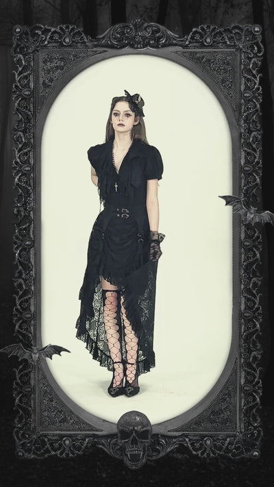 Jupe asymétrique de la marque Dark in Love ! Fabriquée en dentelle, taille avec boucles, ajustement avec lacets à l'arrière et fermeture éclair. Super élégante et parfaite pour créer des looks de fête, de mariage, fantaisie et, bien sûr, gothiques ! Ne la manquez pas !