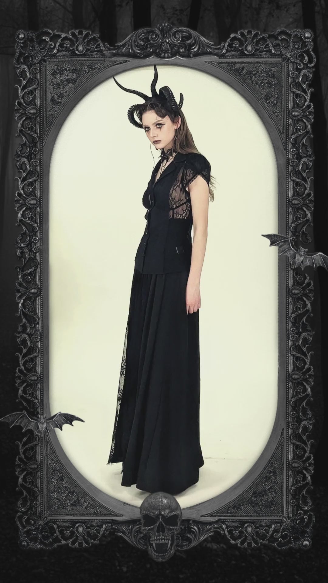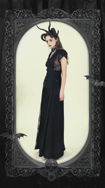 Skirt with high waist lined in lace, guipure detail and red buttons. The back part is elastic. Incredible design by Dark in Love with this model, and as always, with very detailed finishes.