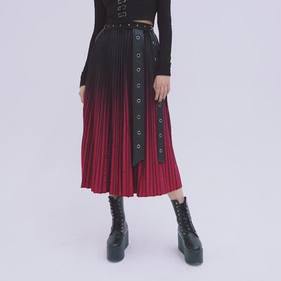 Faites sensation avec cette impressionnante jupe noire et rouge ornée de chaînes décoratives et d'un design long et plissé, idéale pour un style gothique et alternatif. Les chaînes ajoutent une touche rebelle et sophistiquée. Fabriquée à partir d'un mélange de polyester, rayonne, polyamide et spandex, cette jupe noire et rouge avec chaînes garantit confort et durabilité tout en mettant en valeur votre look unique.