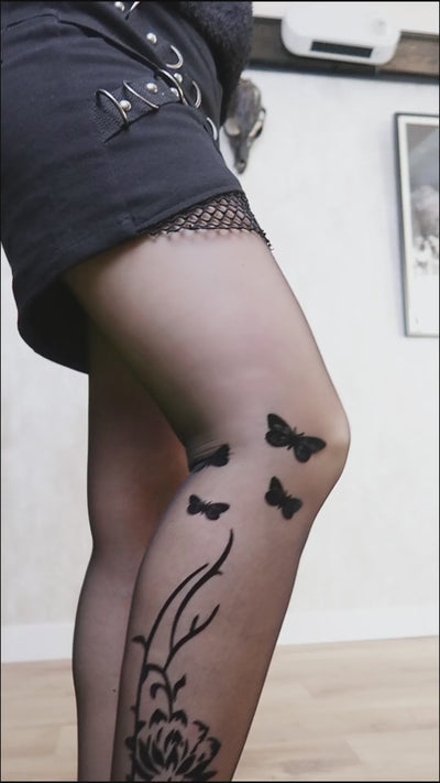 Collants noirs avec des motifs de papillons en velours. 🦋
