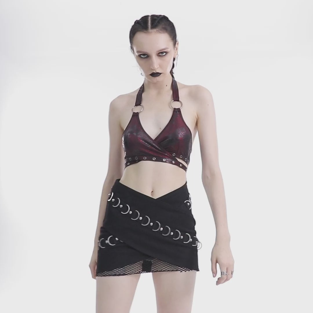 Ajoutez une touche rebelle et audacieuse à votre style avec notre impressionnante minijupe à résille noire. Avec des détails d'anneaux décoratifs et de clous à l'avant ainsi qu'une fermeture éclair à l'arrière, cette minijupe à résille attirera sûrement l'attention. Fabriquée à partir d'un mélange de coton, polyester et élasthanne, elle garantit confort et style à parts égales.